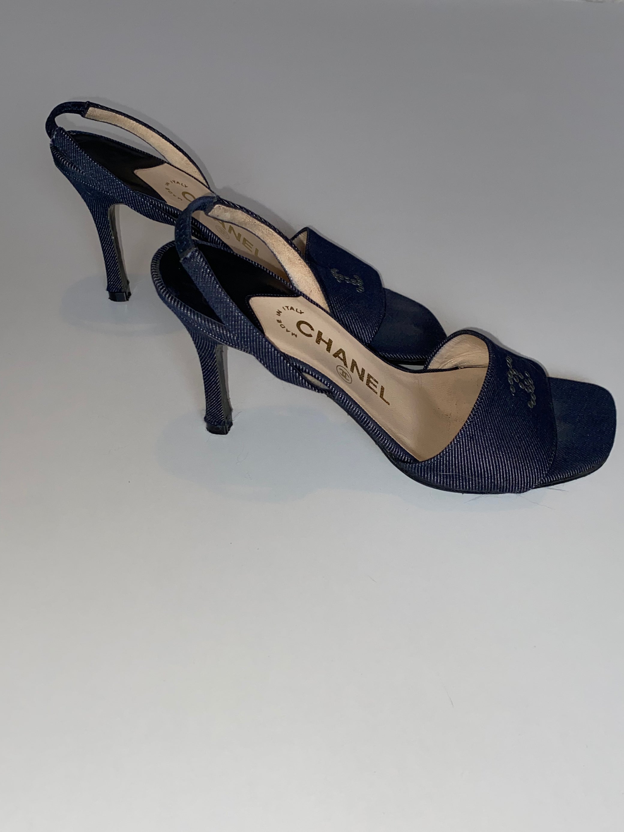 CHANEL DENIM SLINGBACK SANDALS