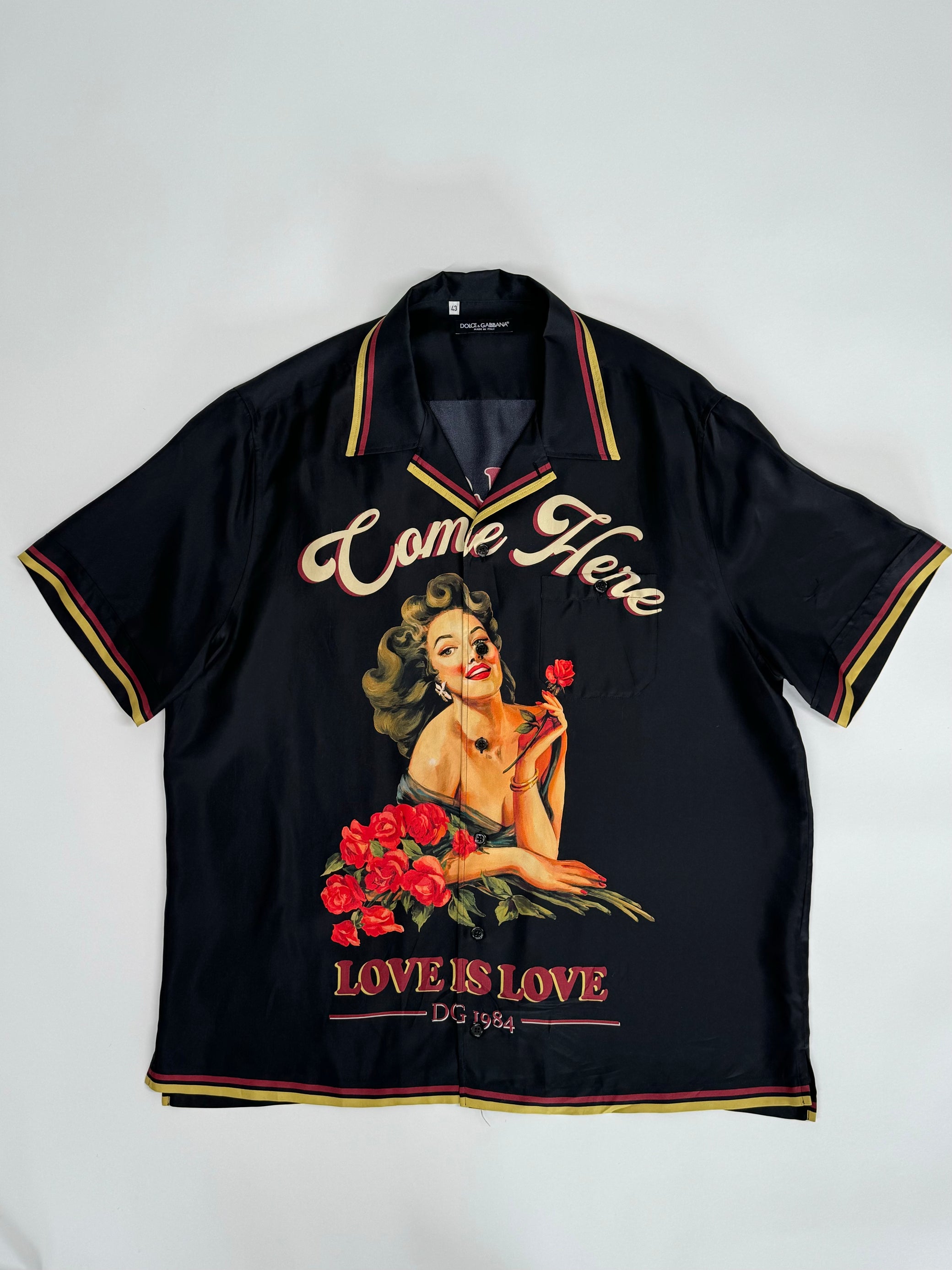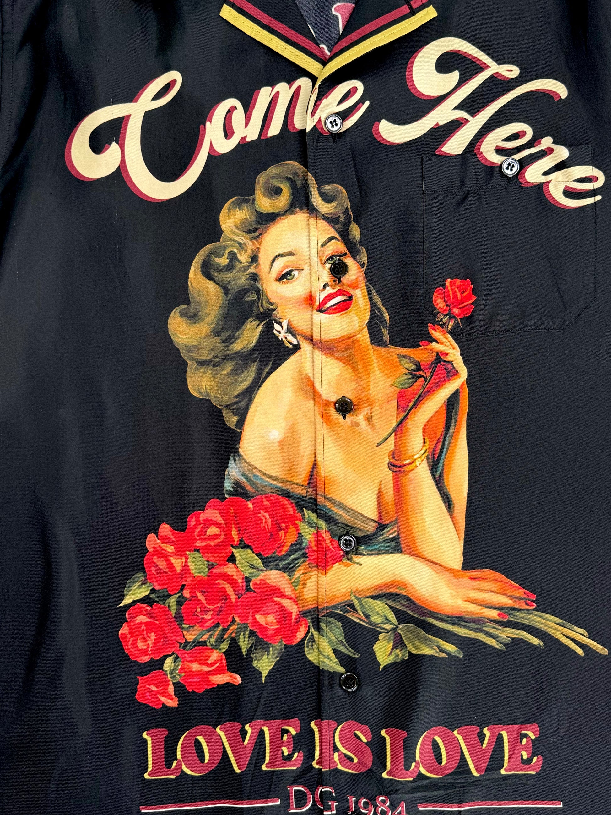 Dolce & Gabbana Love Is Love Silk Hawaii Pin Up Shirt