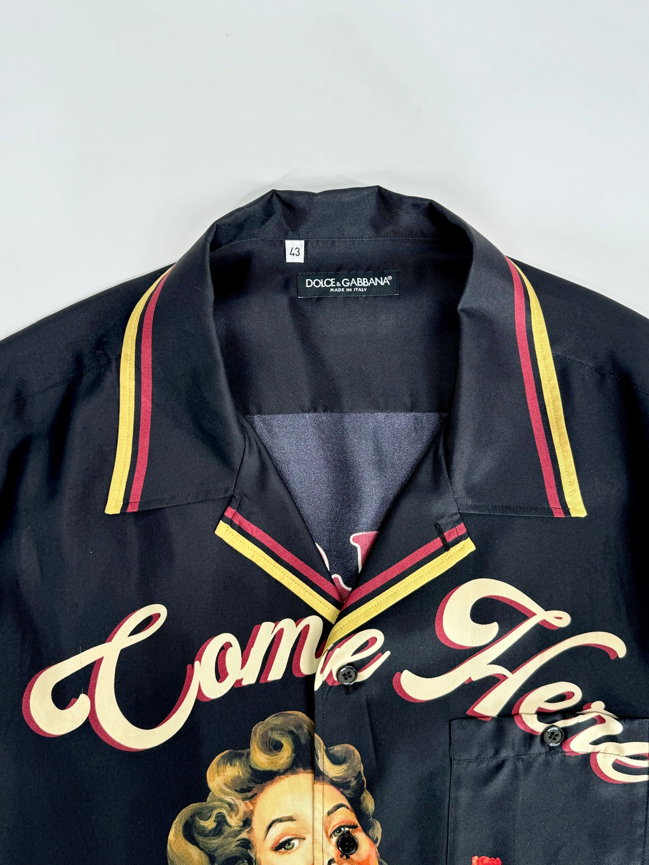 + 100% Silk D&G shirt, featuring DOLCE & GABBANA print at back and Pin Up image at front.