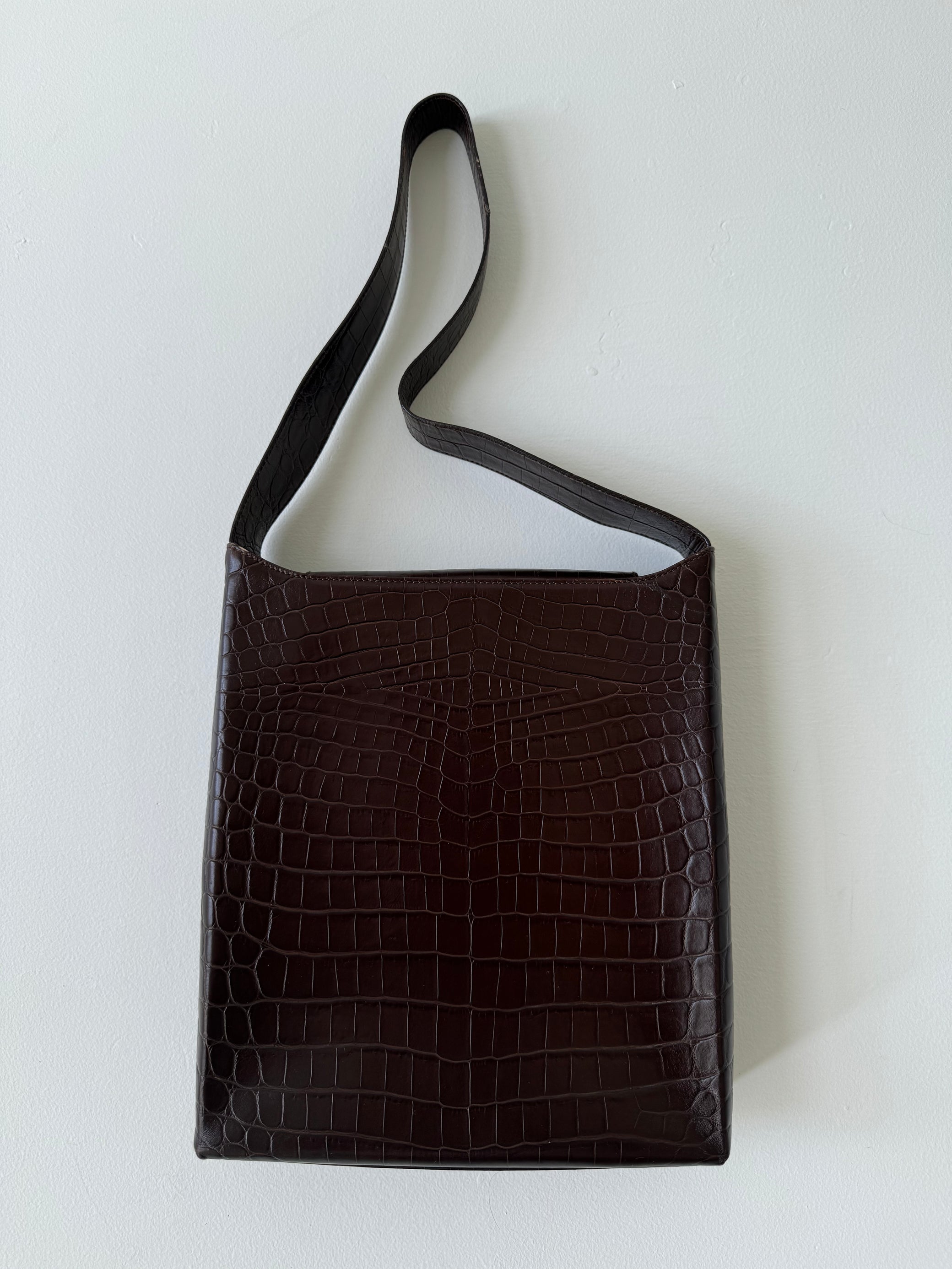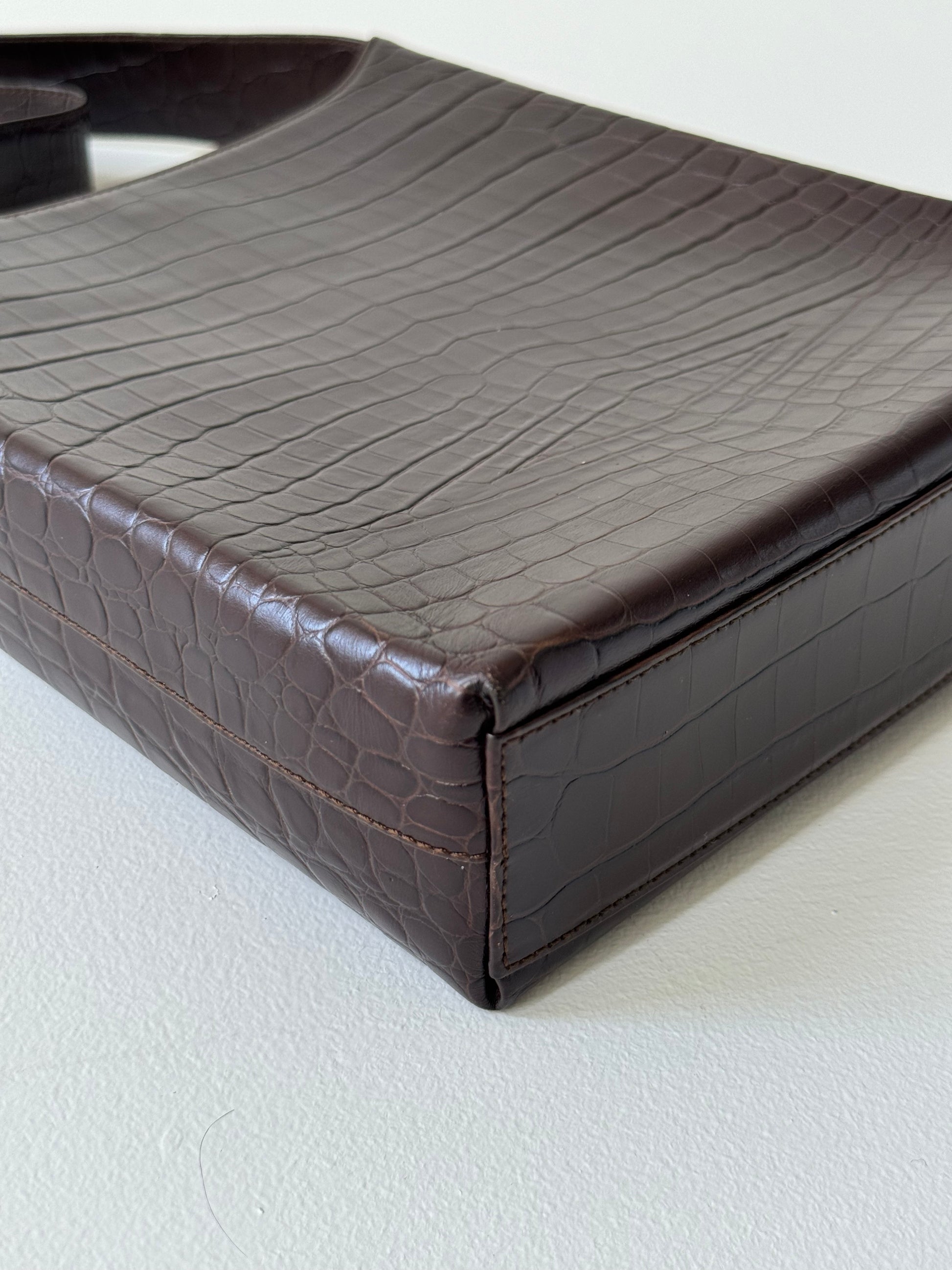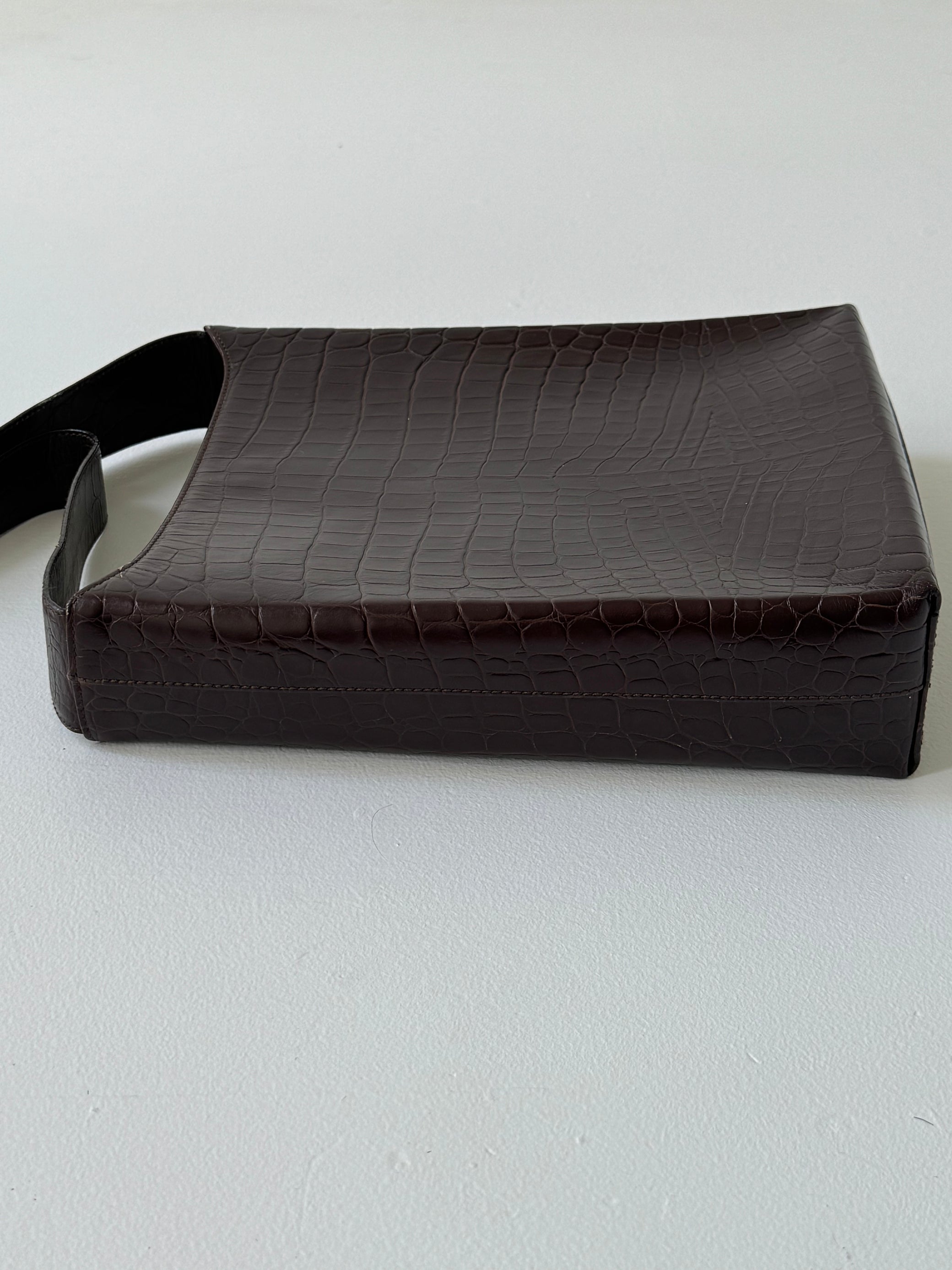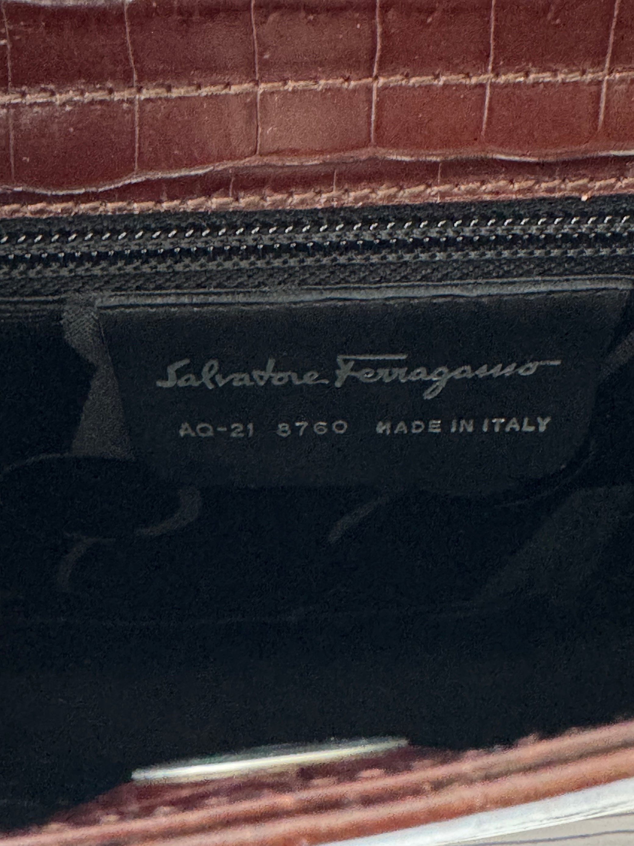 Ferragamo Croco Embossed Vertical Shoulder Bag