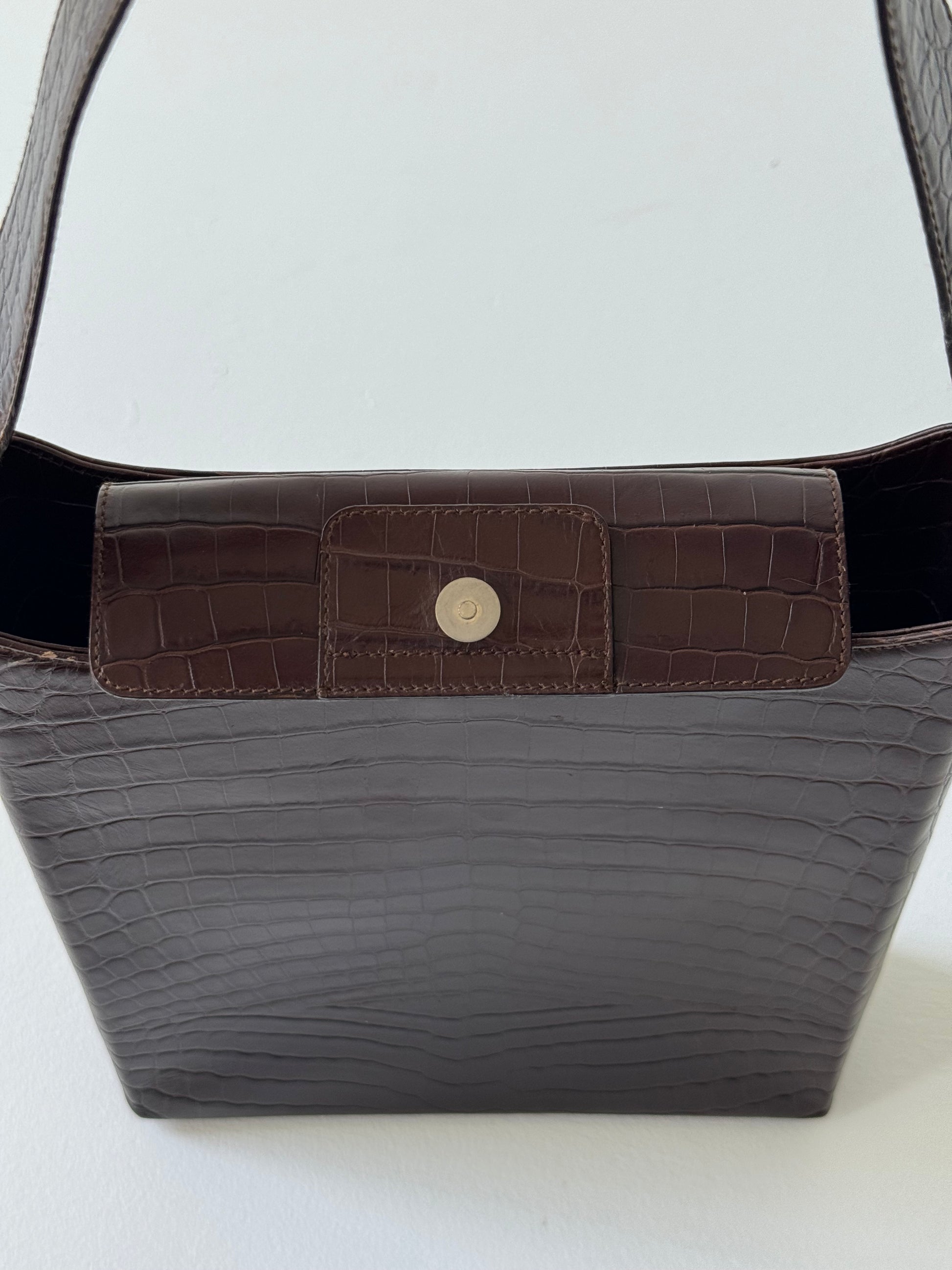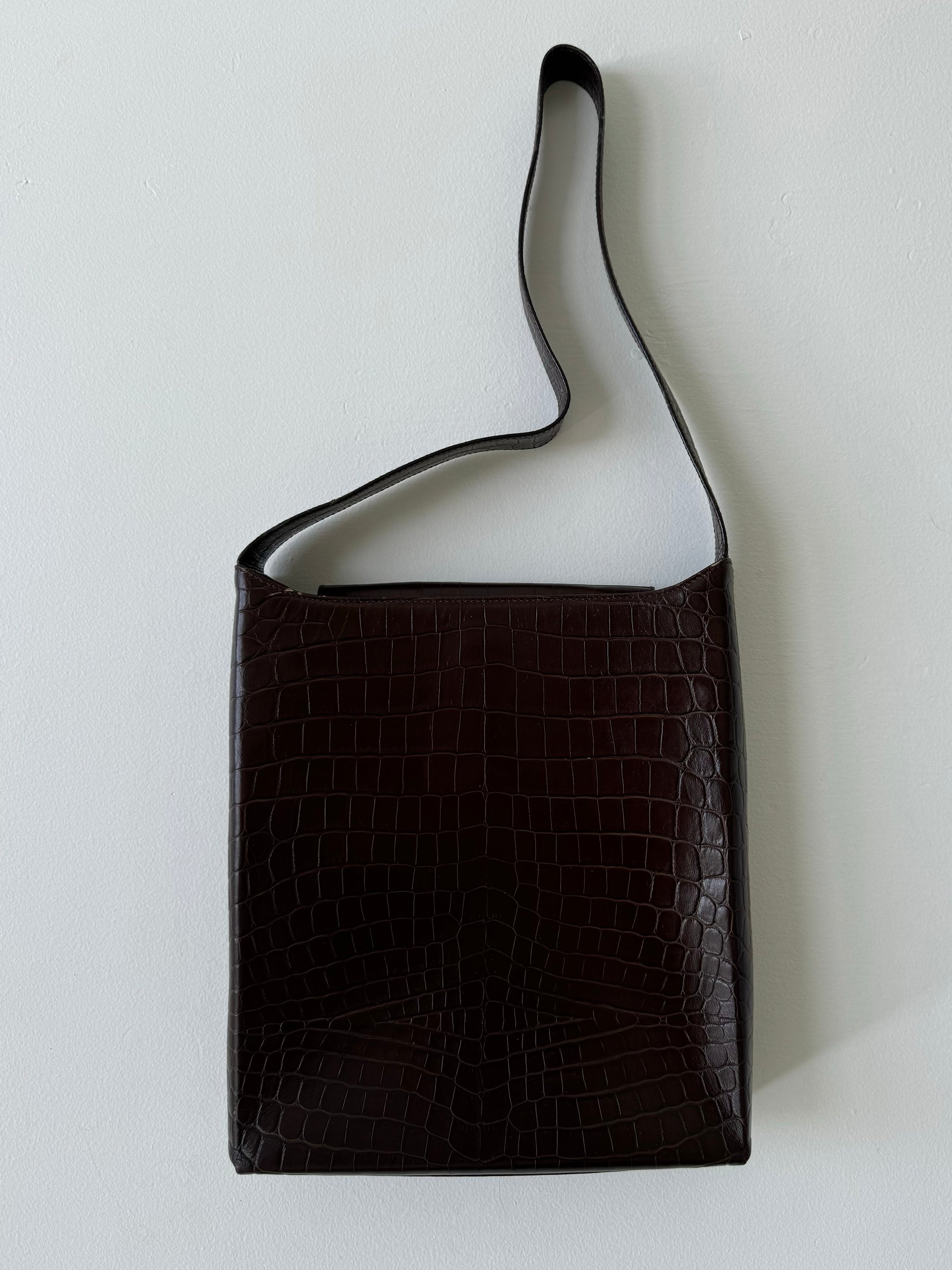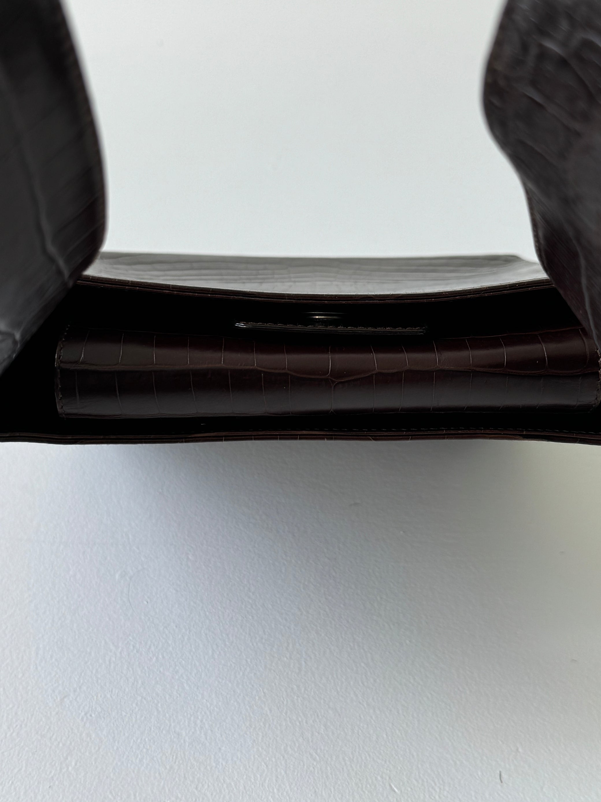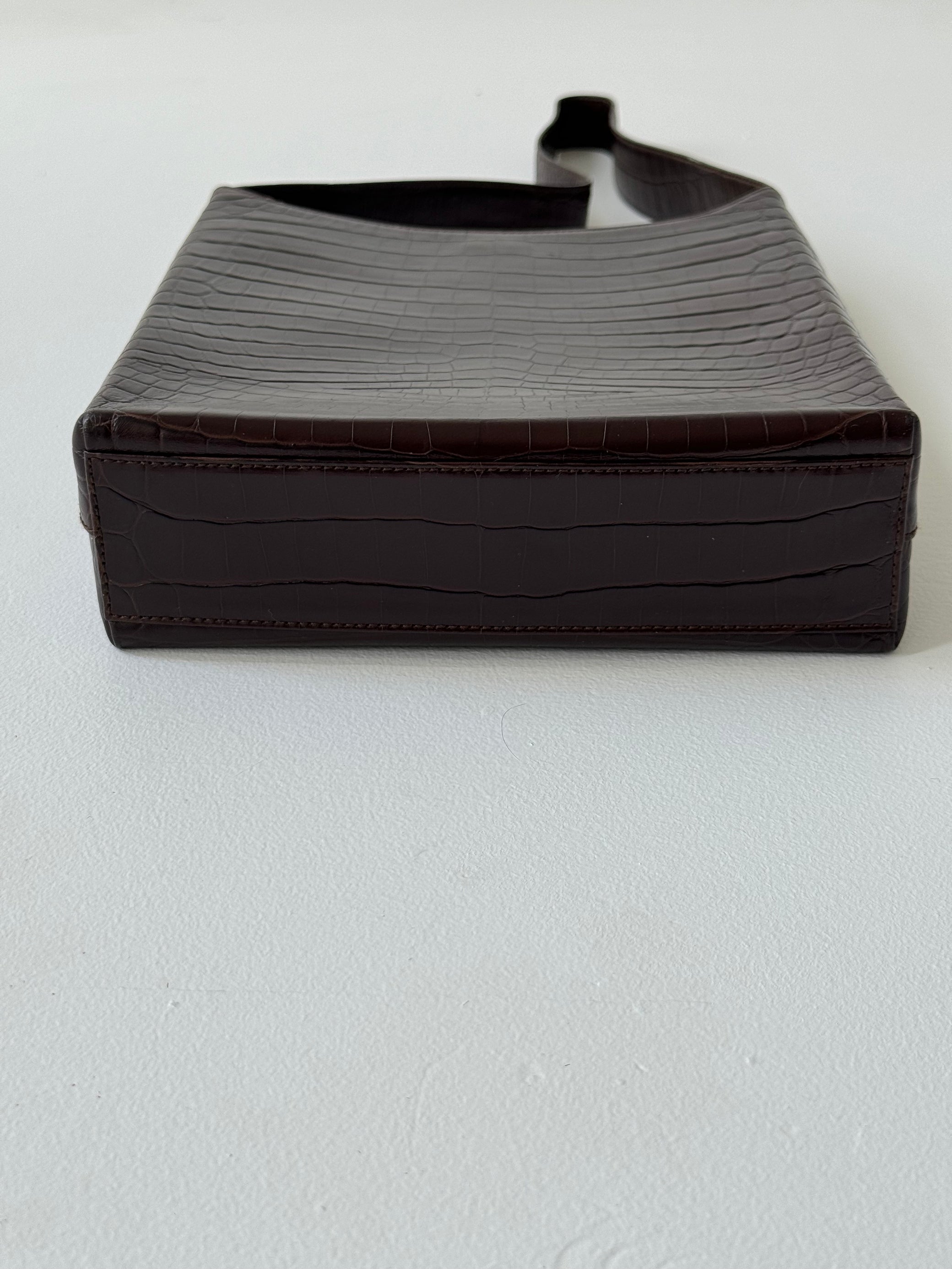 Ferragamo Croco Embossed Vertical Shoulder Bag