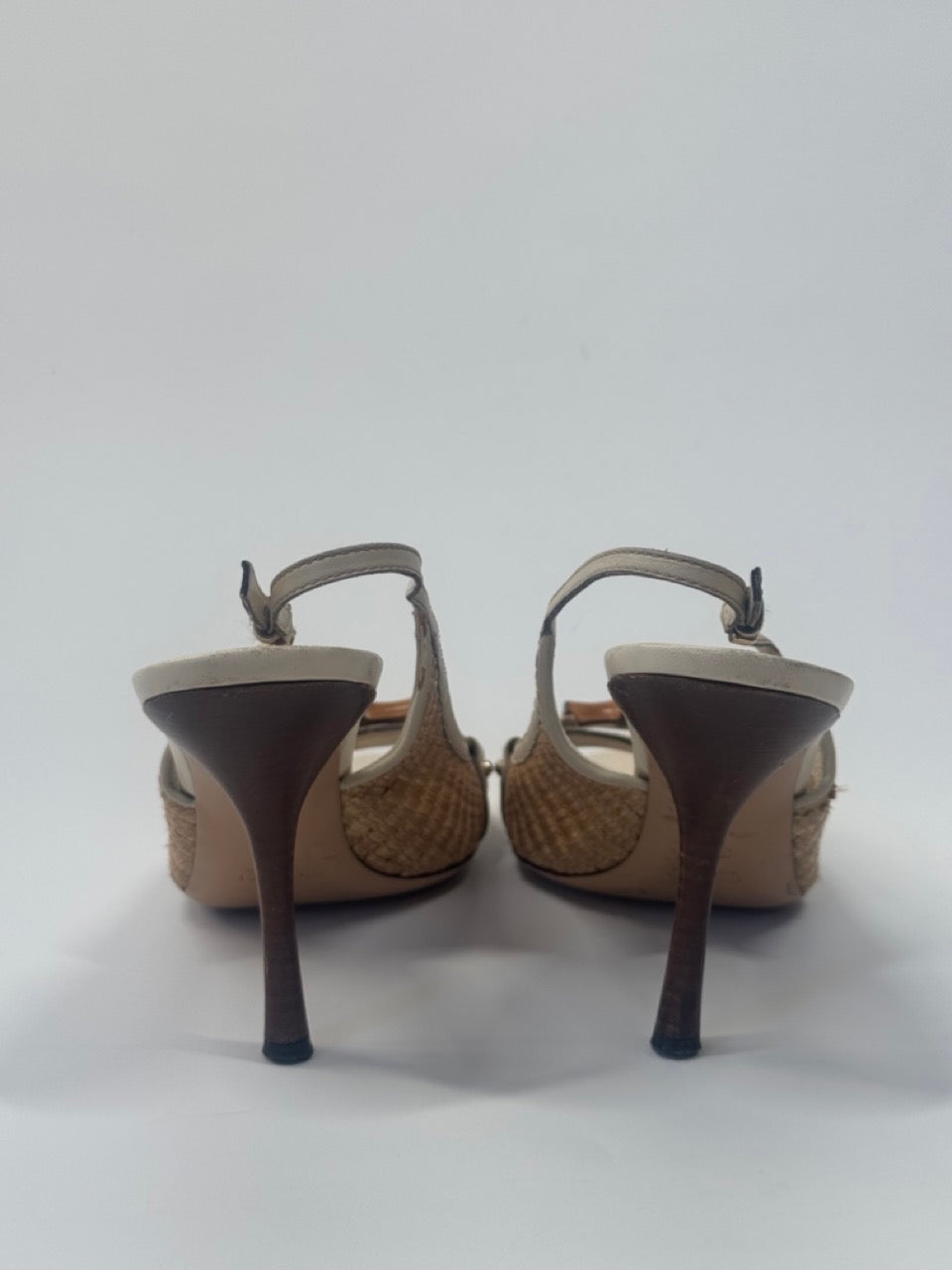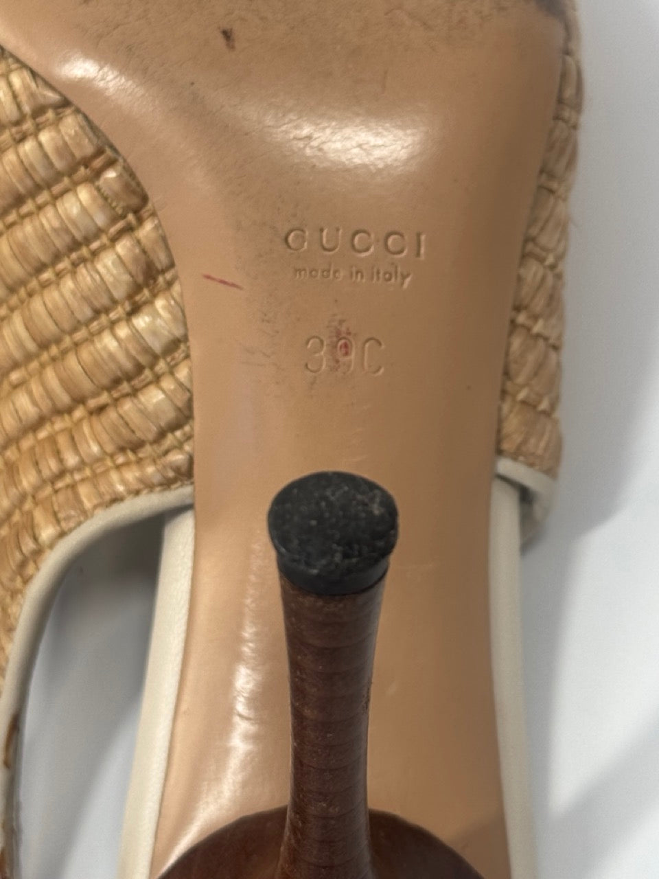 Gucci Bamboo Horsebit Raffia Leather Slingback Heels