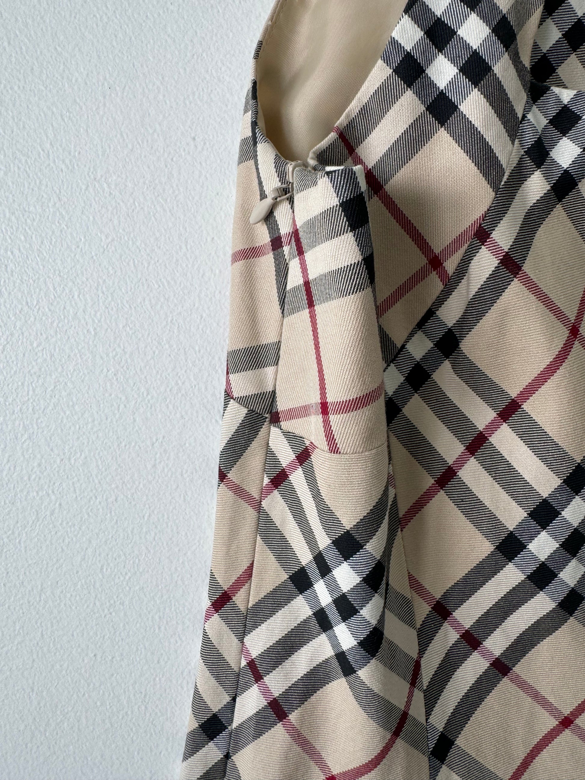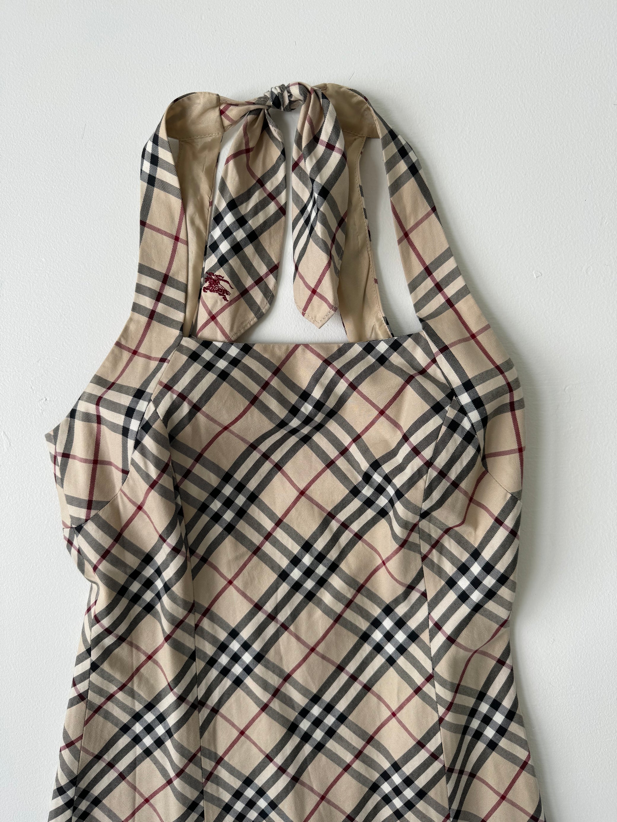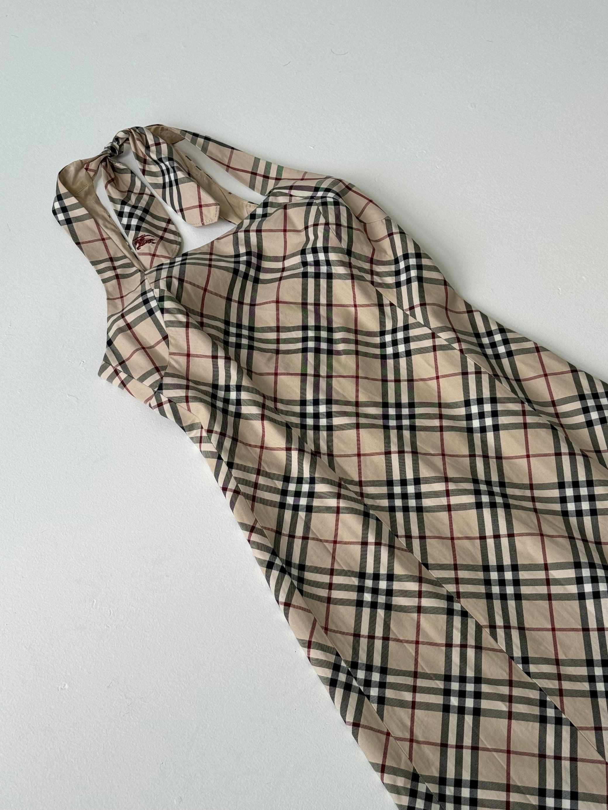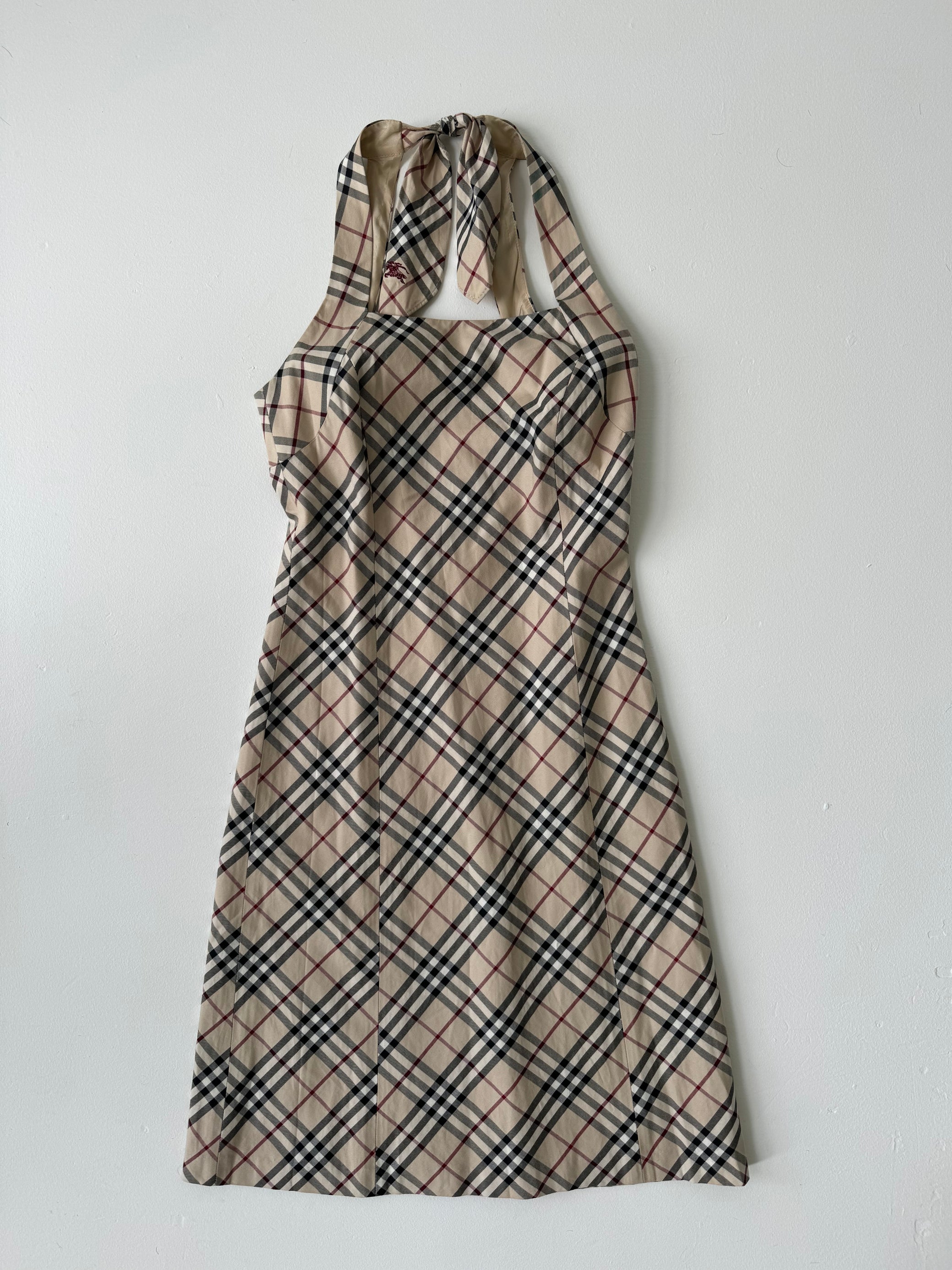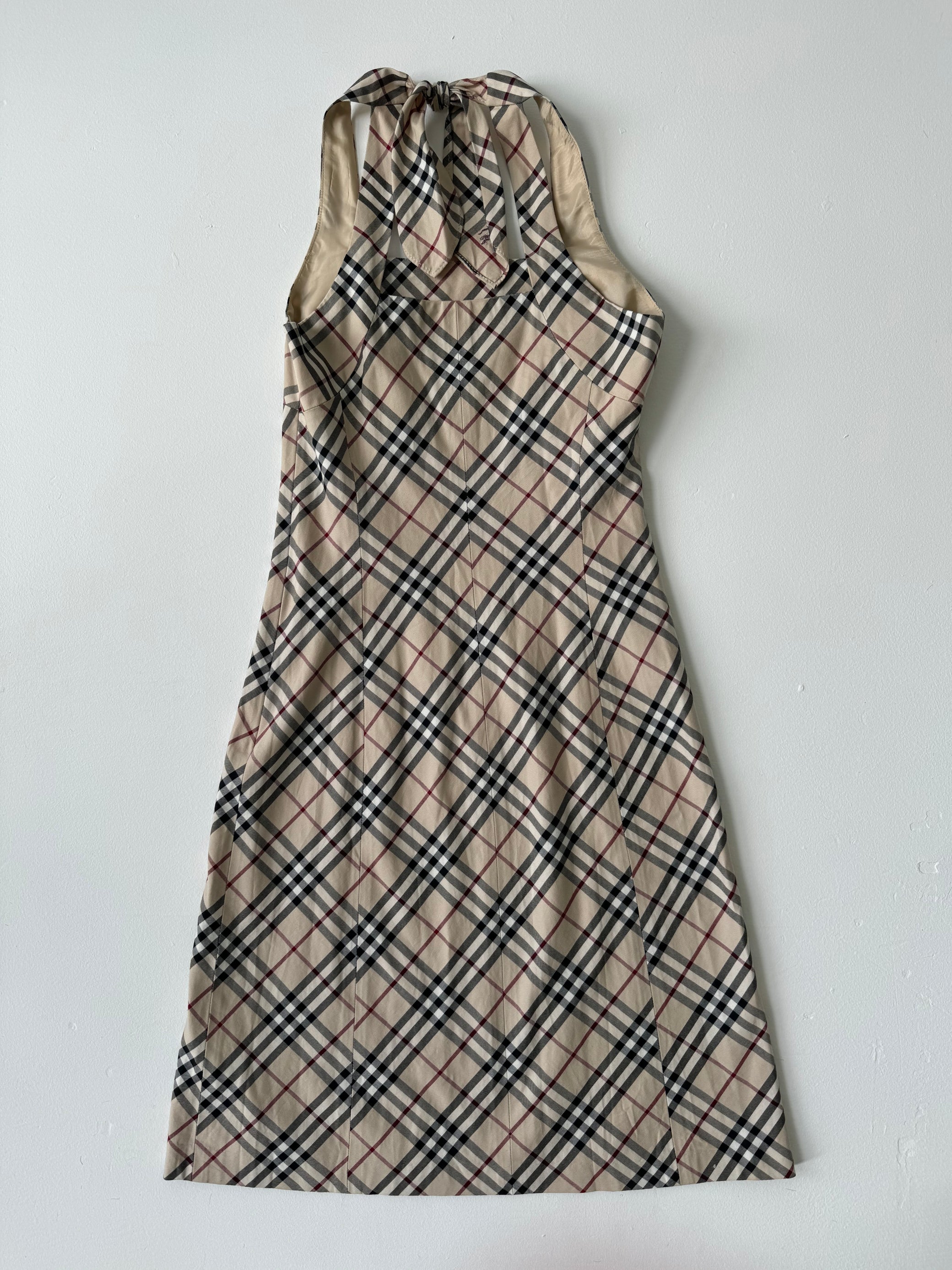 + Nova Check print summer dress, A line cut and halter tie at neck and zip tie on side.