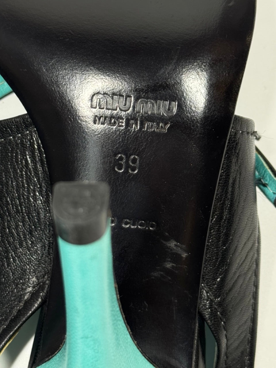 • Black leather outsole stamped with “MIU MIU Made in Italy” and size 39