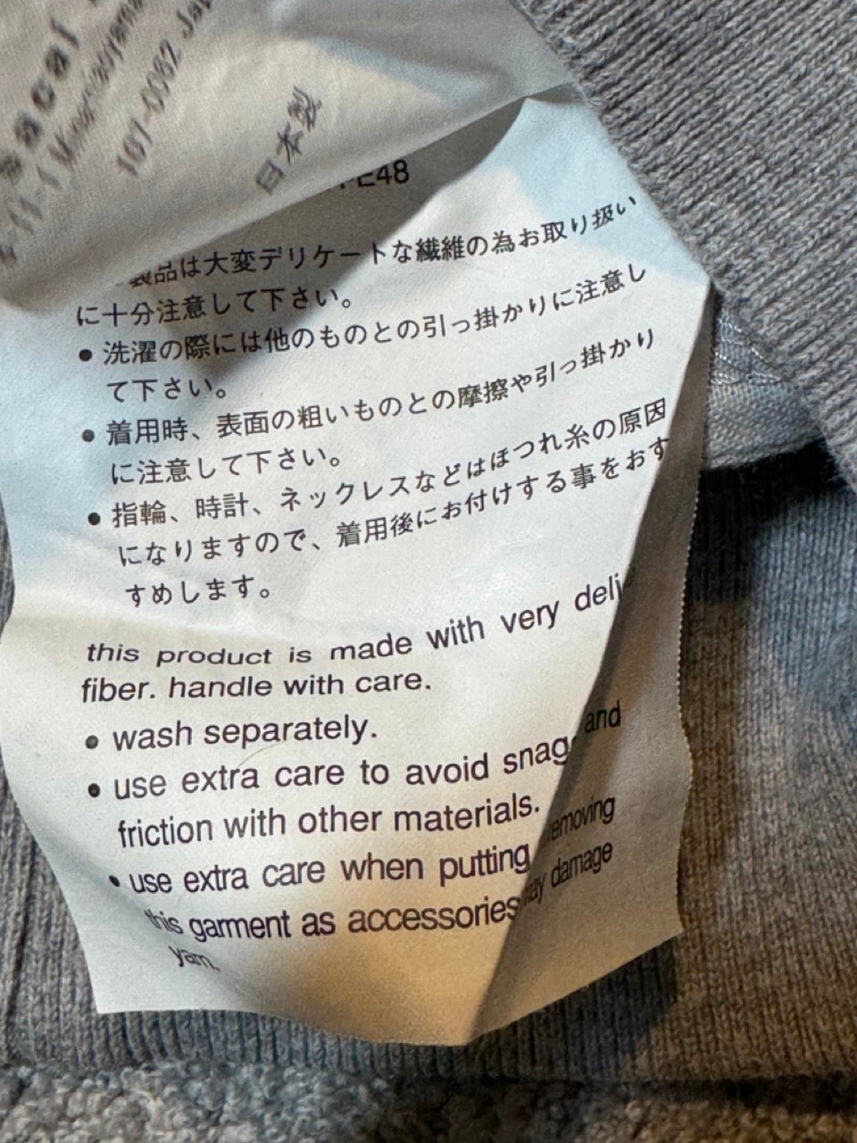 Dry clean only. Use extra care to avoid snagging or friction with other materials. Handle with care due to delicate fibers.