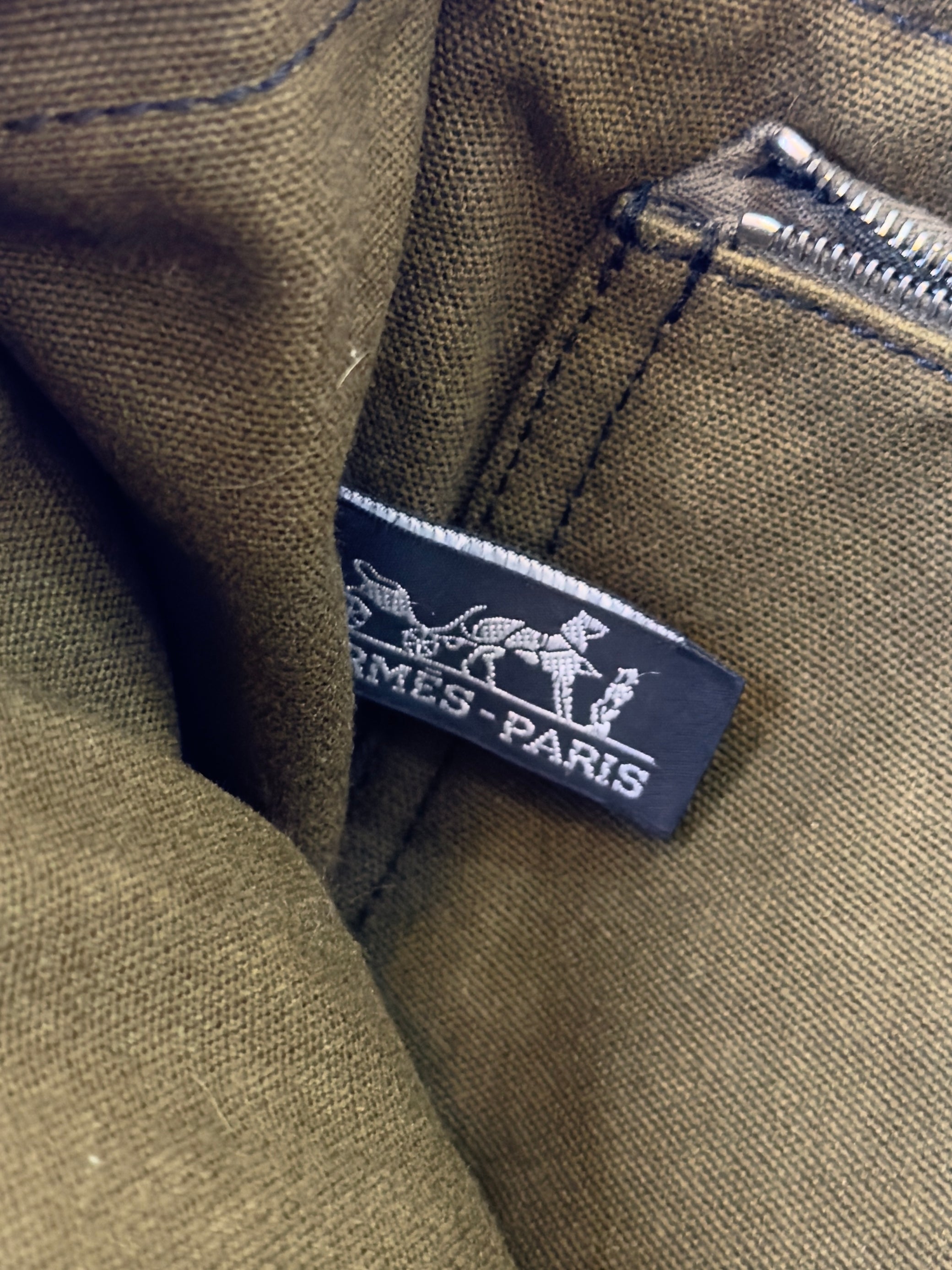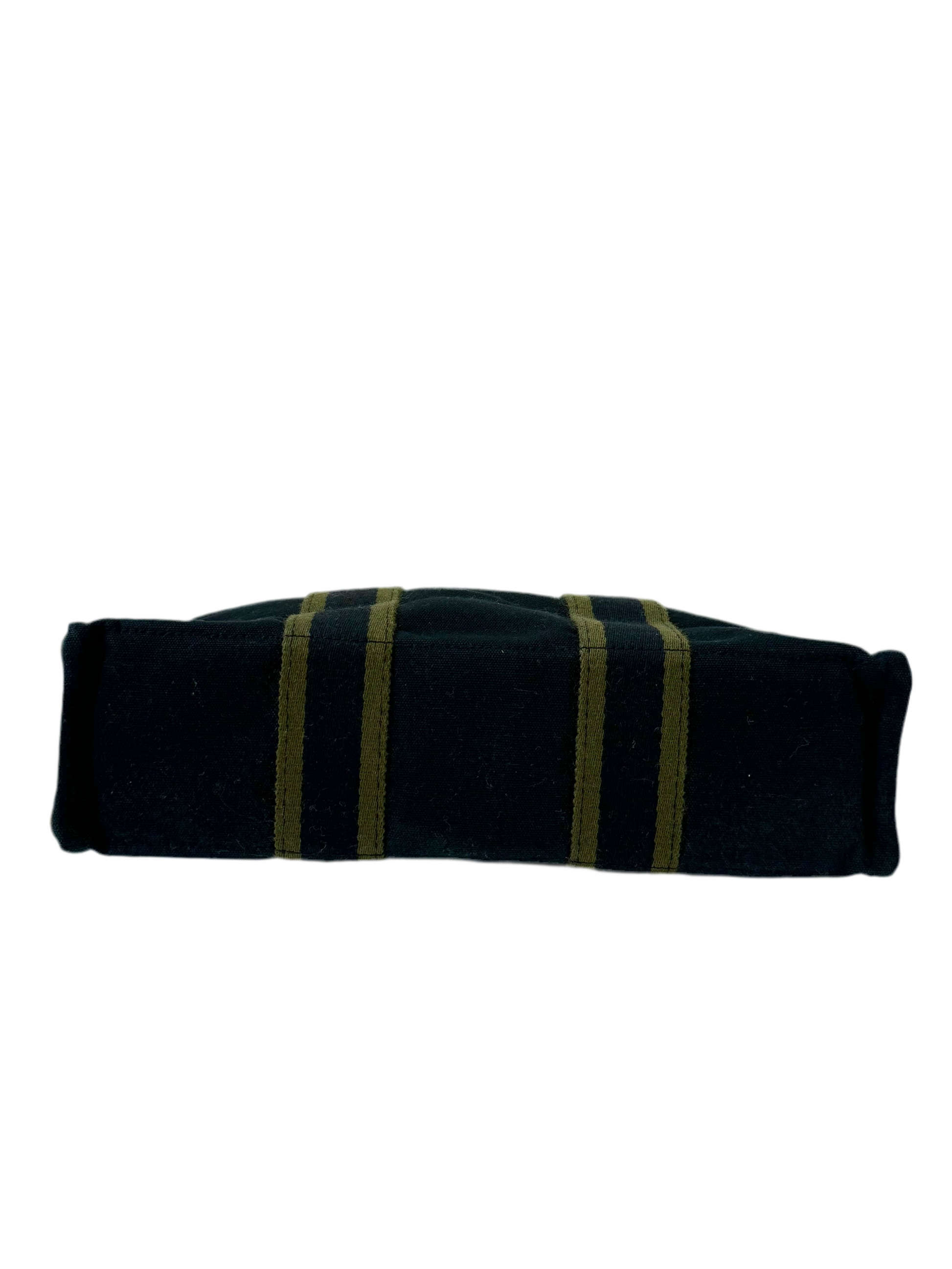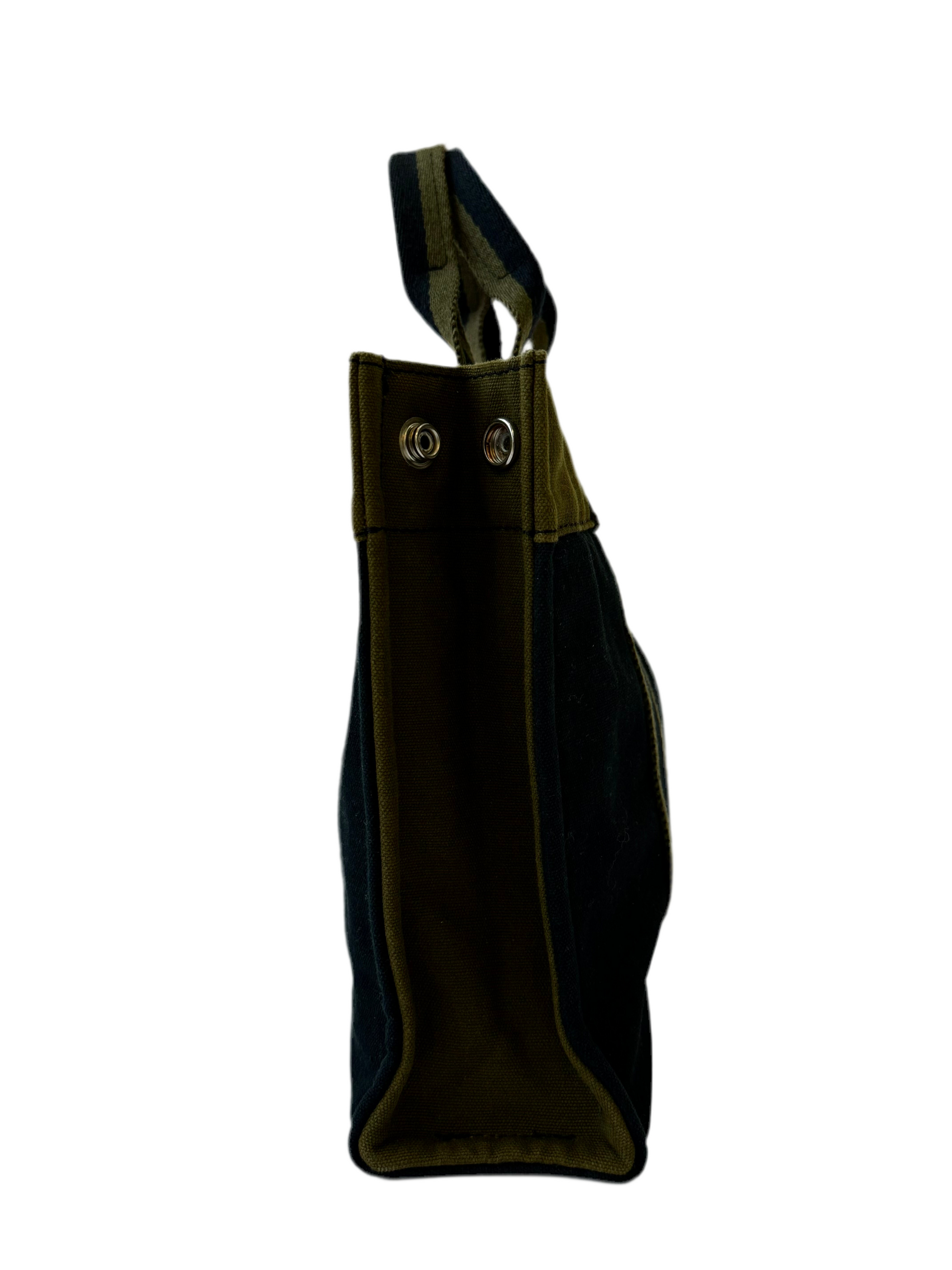 2006 Hermes canvas tote in PM size, featuring exterior pocket and silver logo hardware.