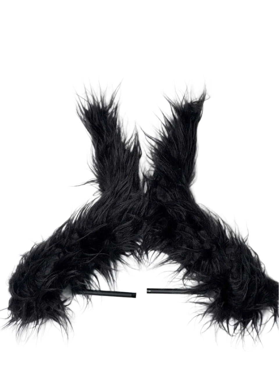 Store away from moisture and heat. Gently comb faux fur with a soft brush to maintain shape and texture. Do not machine wash.
