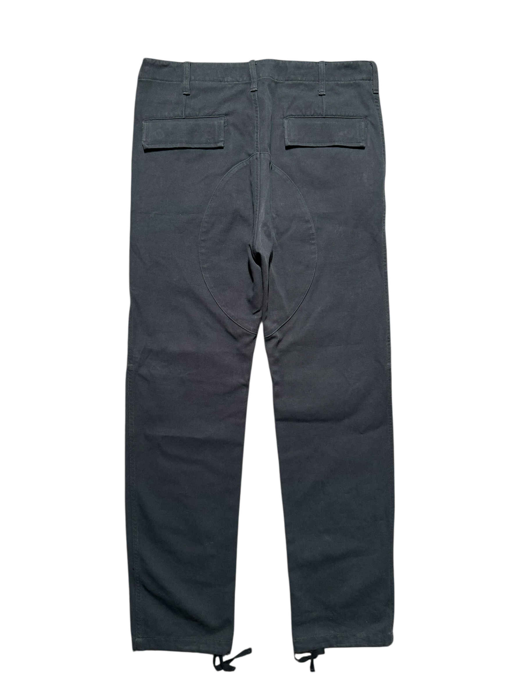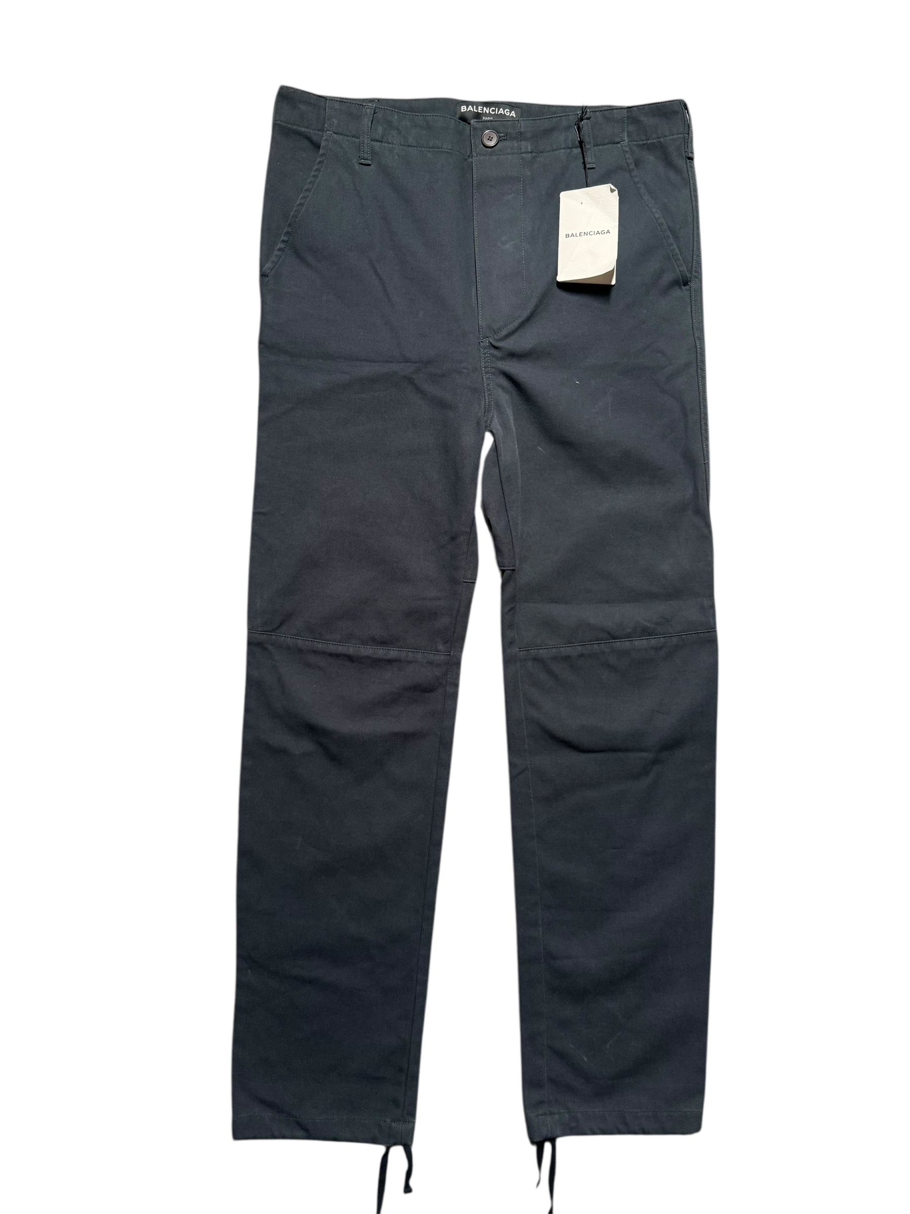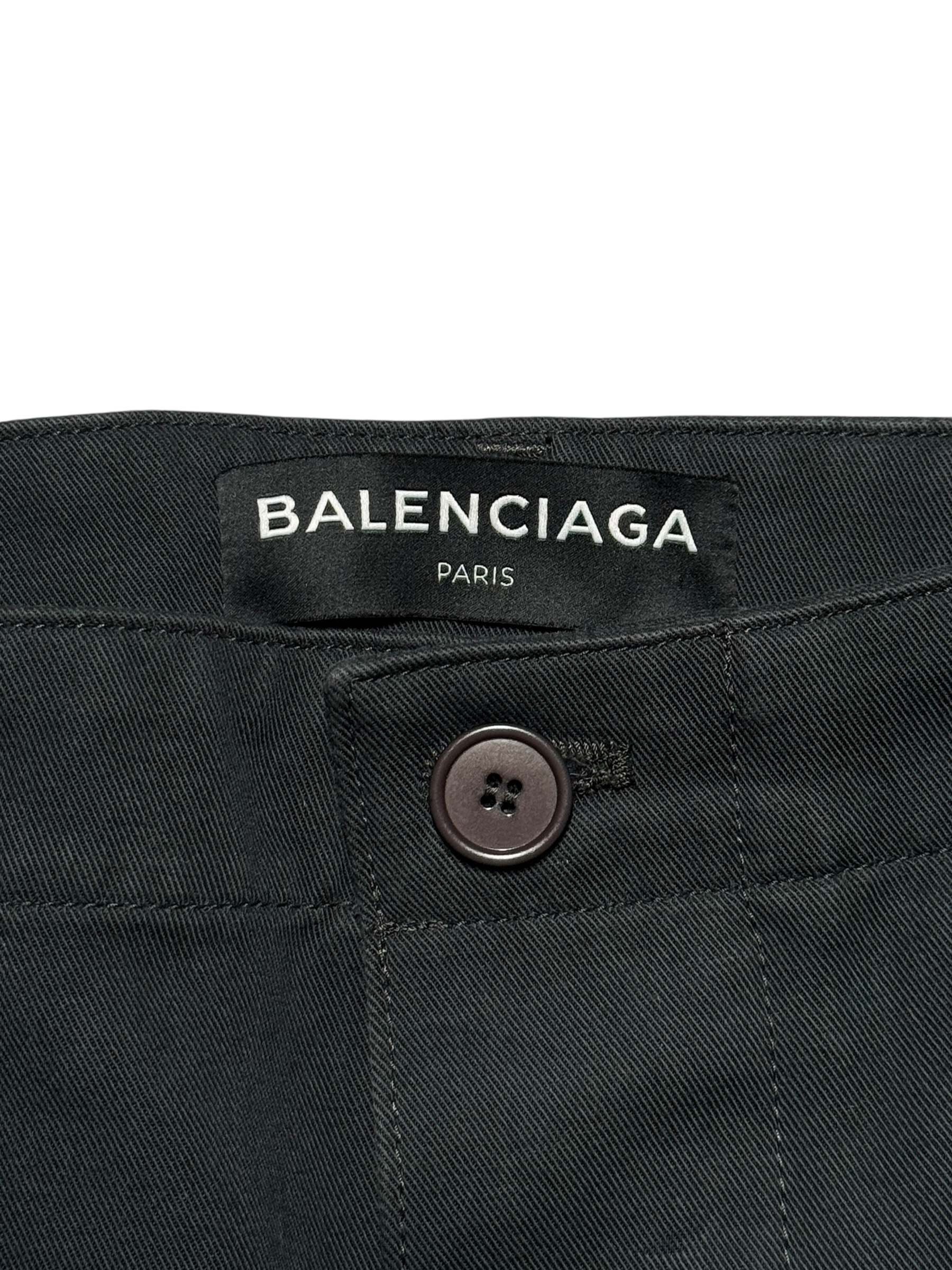 From Balenciaga’s Spring/Summer 2017 men’s collection under Demna Gvasalia, these tailored twill pants fuse workwear construction with the label’s signature subverted proportions. The collection marked one of Gvasalia’s earliest seasons as creative director, redefining Balenciaga’s menswear codes with utilitarian minimalism and sculptural shapes.
