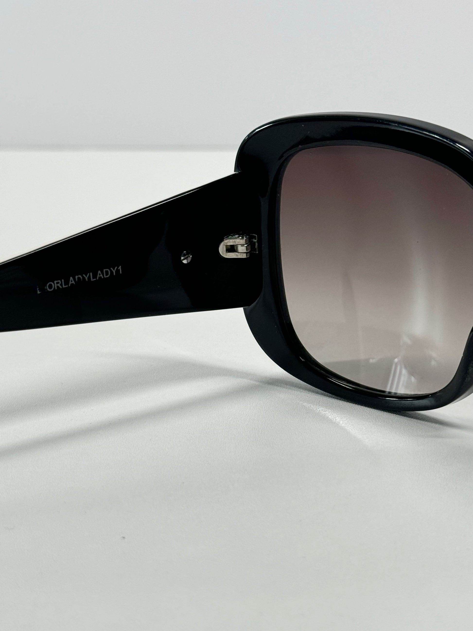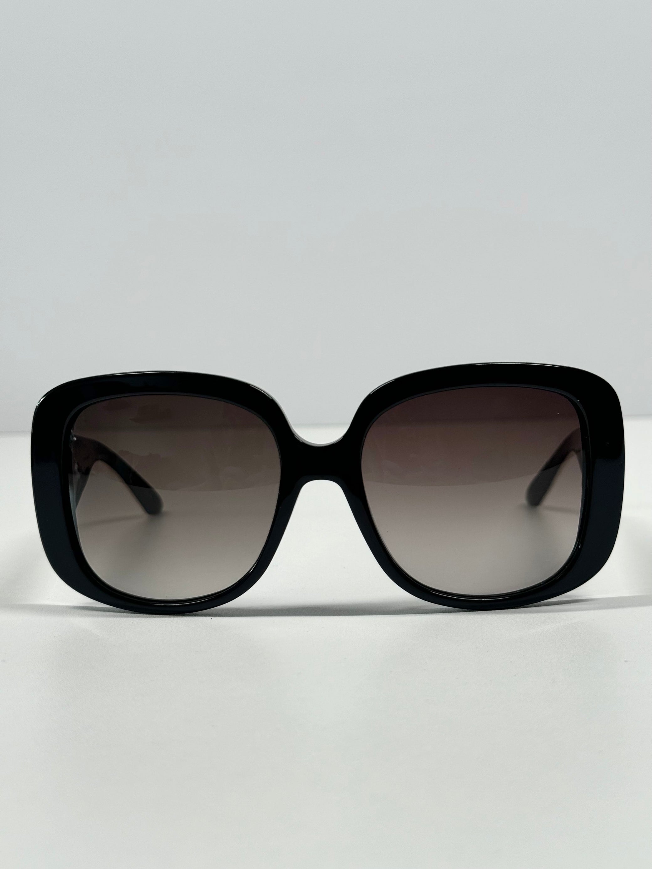 + Classic Cannage design on each side in cream with Dior logo in silver tone hardware. Oversized black silhouette.