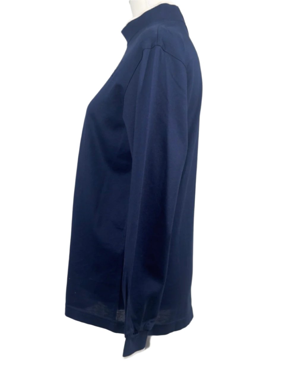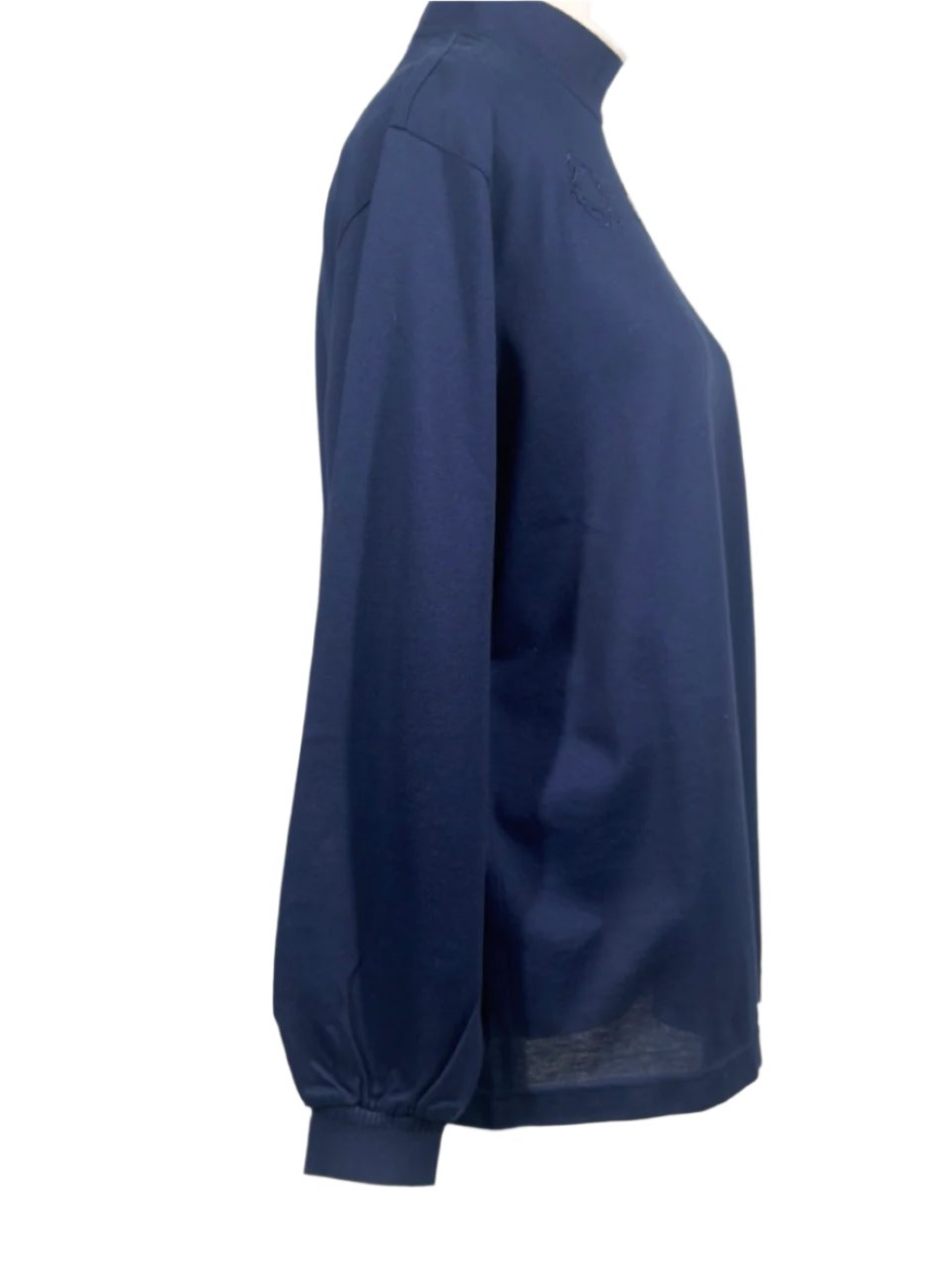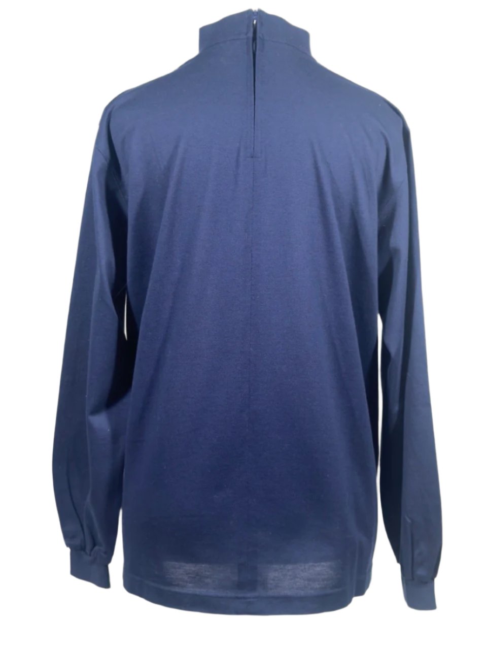 - Details: Navy blue long-sleeve sweatshirt featuring a mock neck, white embroidered CD Sports logo, and back zipper closure for added structure.
