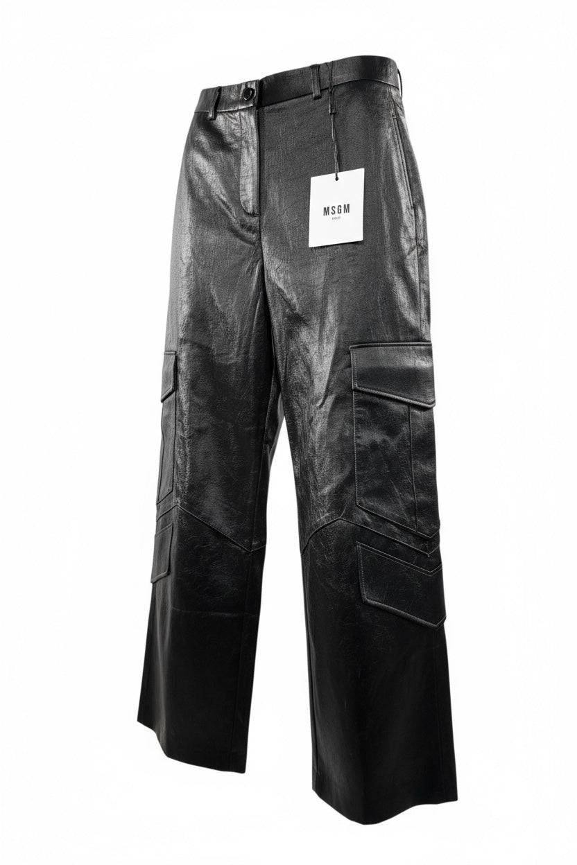 MSGM Black Coated Cargo Pants