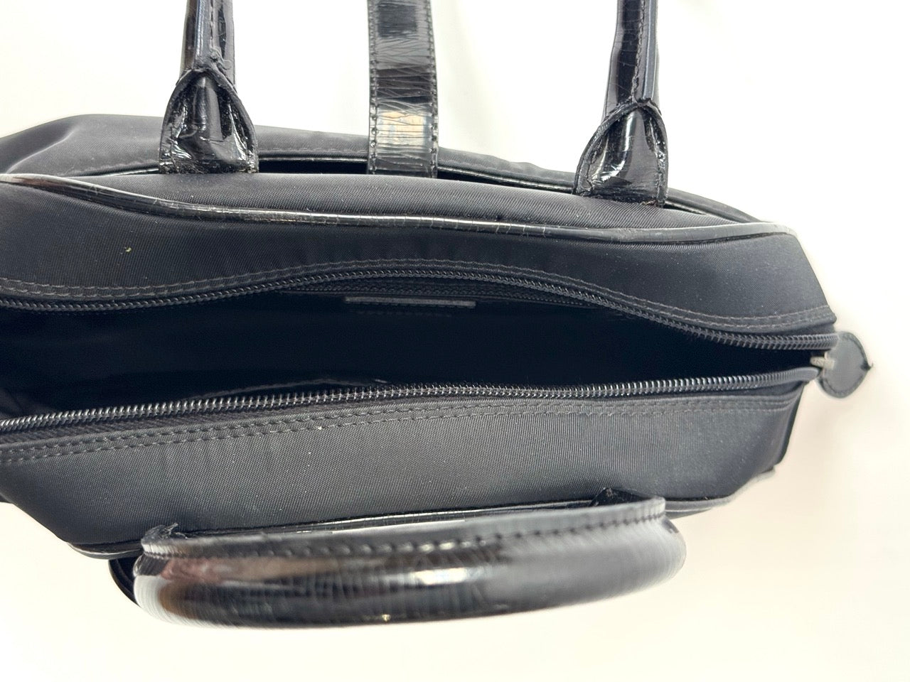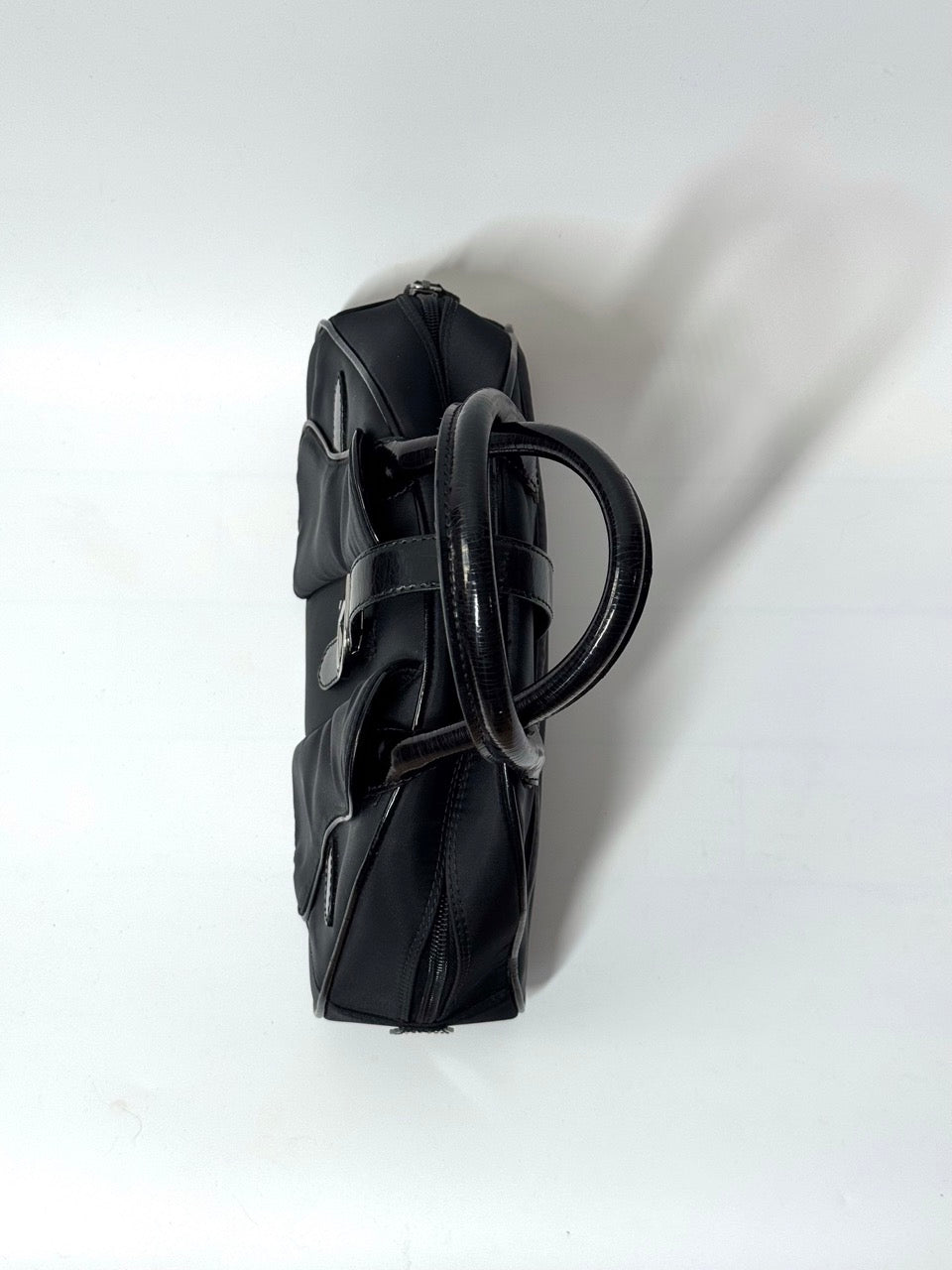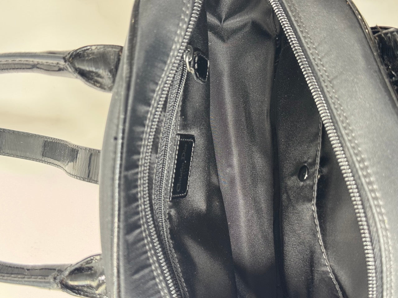 Wipe gently with a soft cloth. Avoid overexposure to direct sunlight or moisture to preserve the condition of nylon and patent leather.