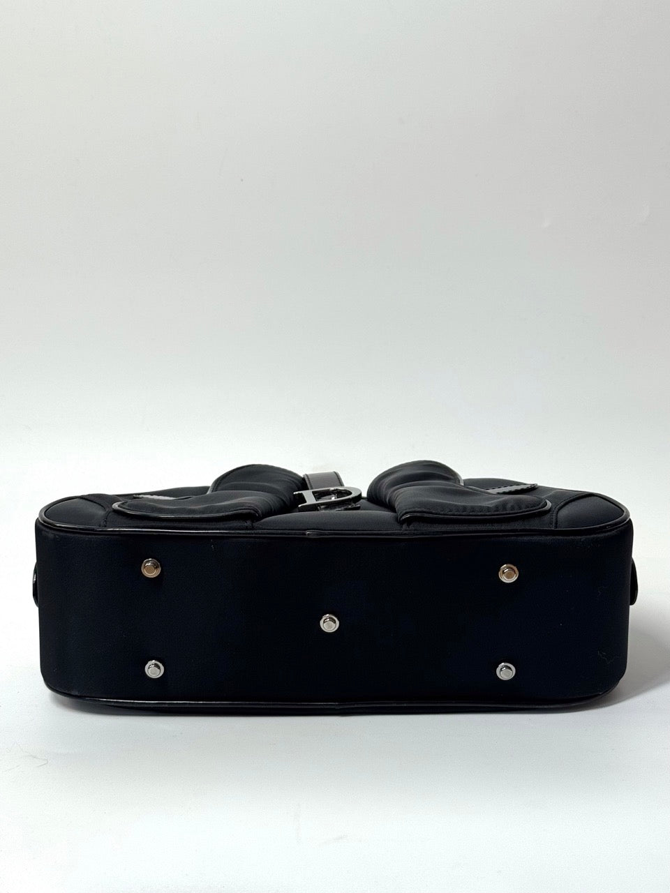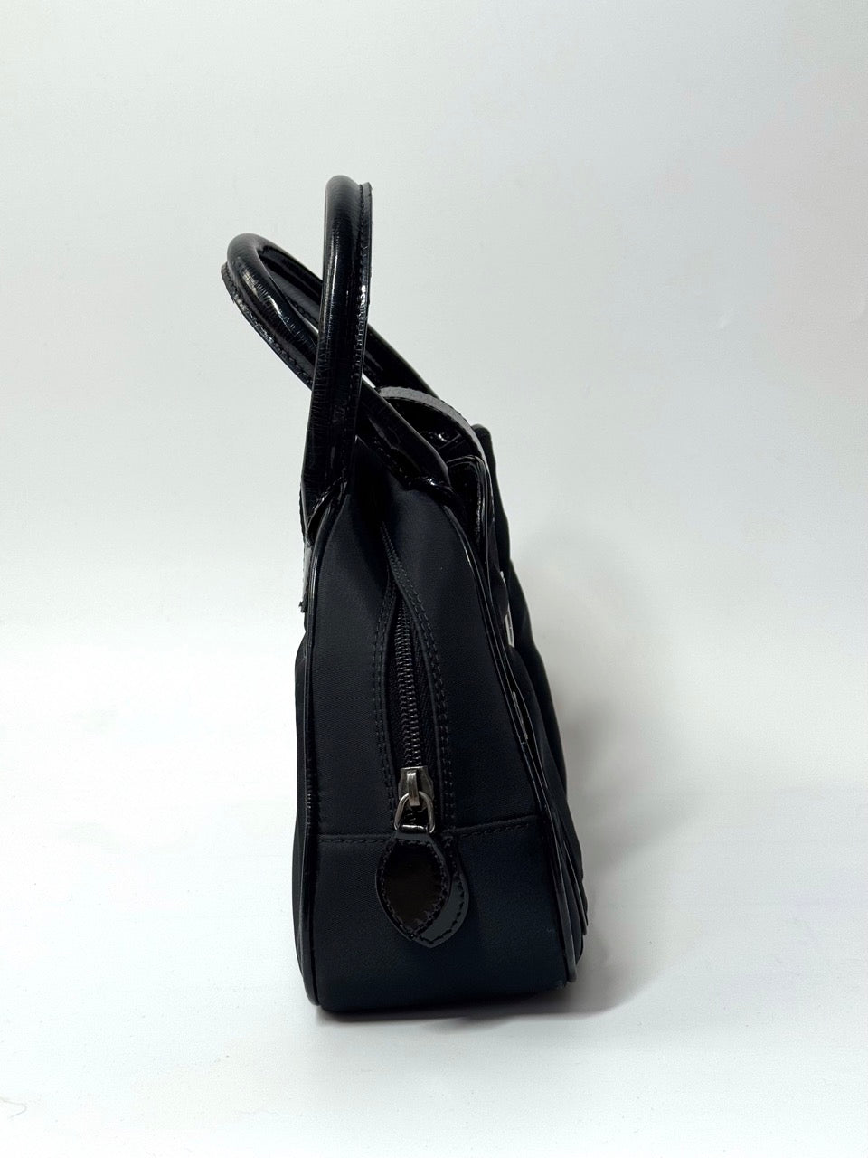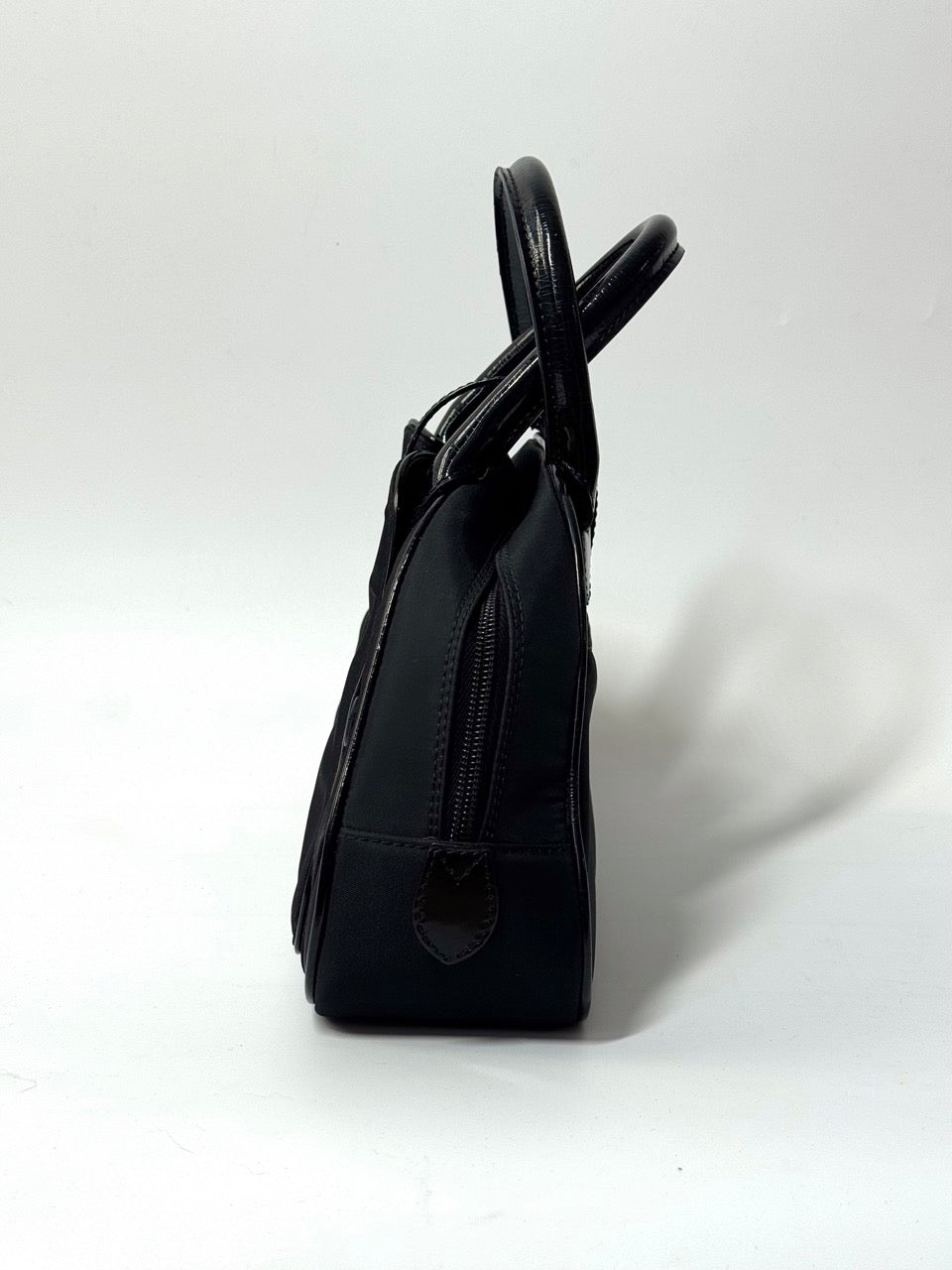 Wipe gently with a soft cloth. Avoid overexposure to direct sunlight or moisture to preserve the condition of nylon and patent leather.