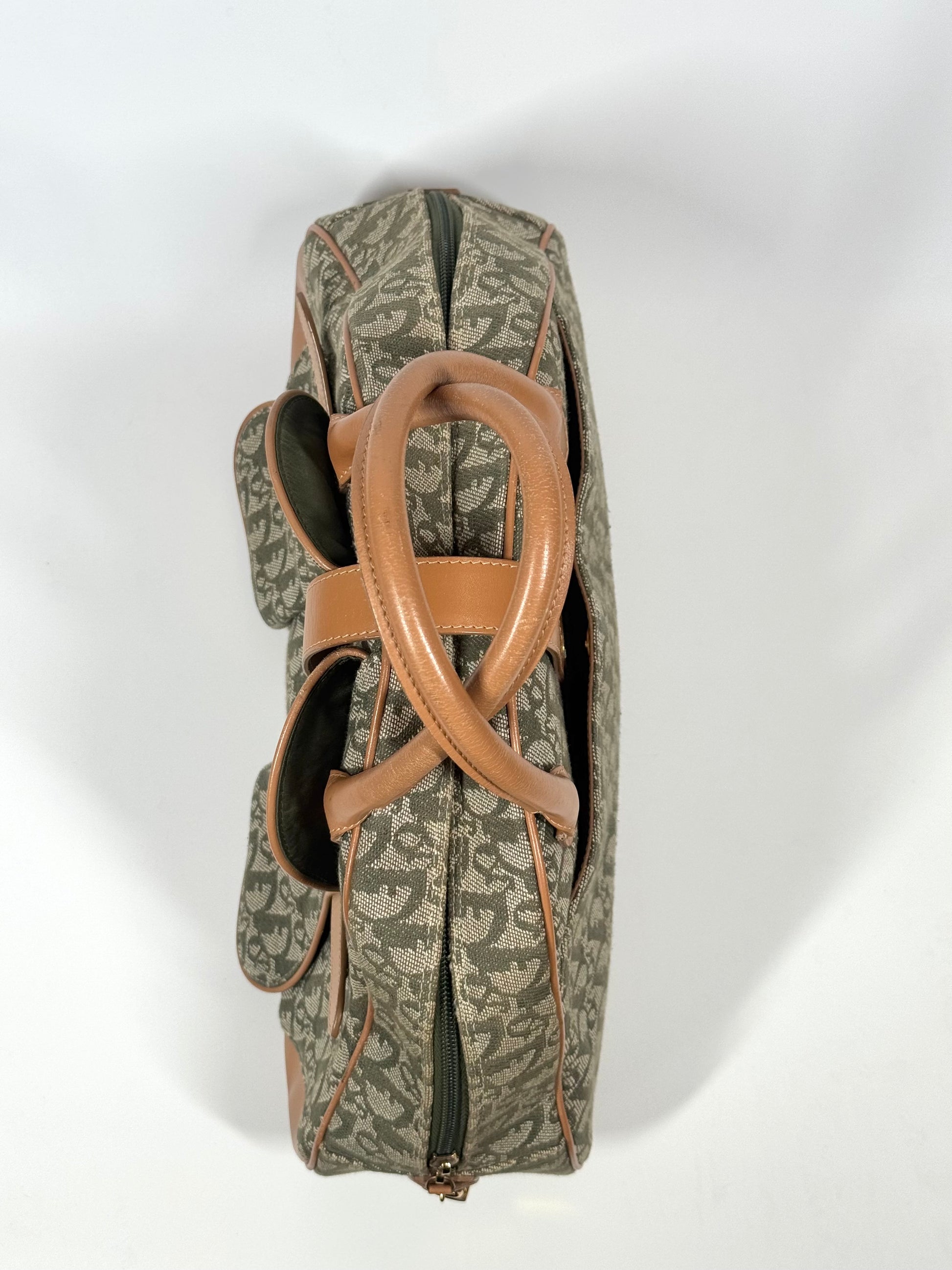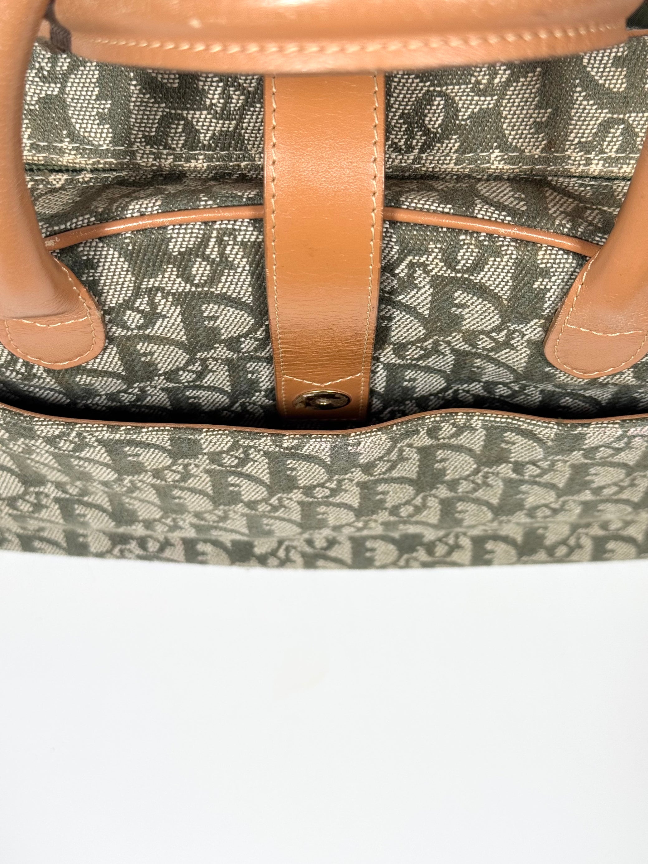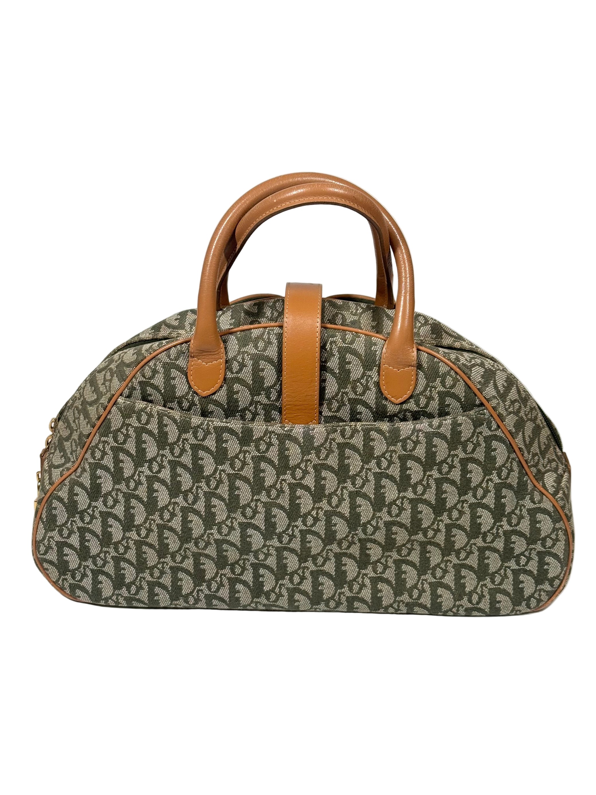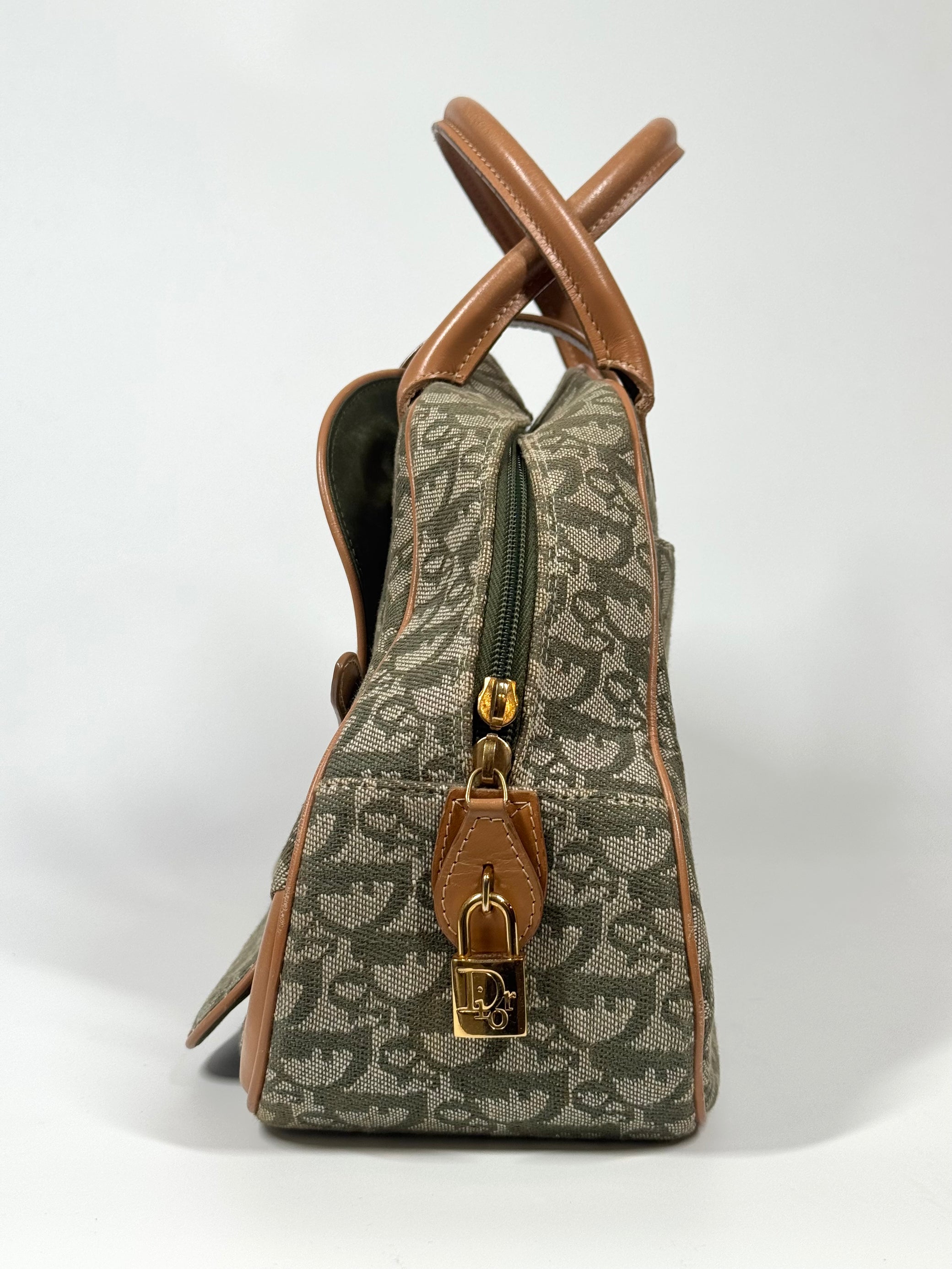 A standout from Dior’s early 2000s era, this rare Trotter duffle bag features an exaggerated double saddle silhouette, trimmed in smooth tan leather and finished with the signature oversized ‘D’ charm. The khaki Dior monogram canvas offers a neutral yet iconic aesthetic, ideal for collectors or everyday styling.