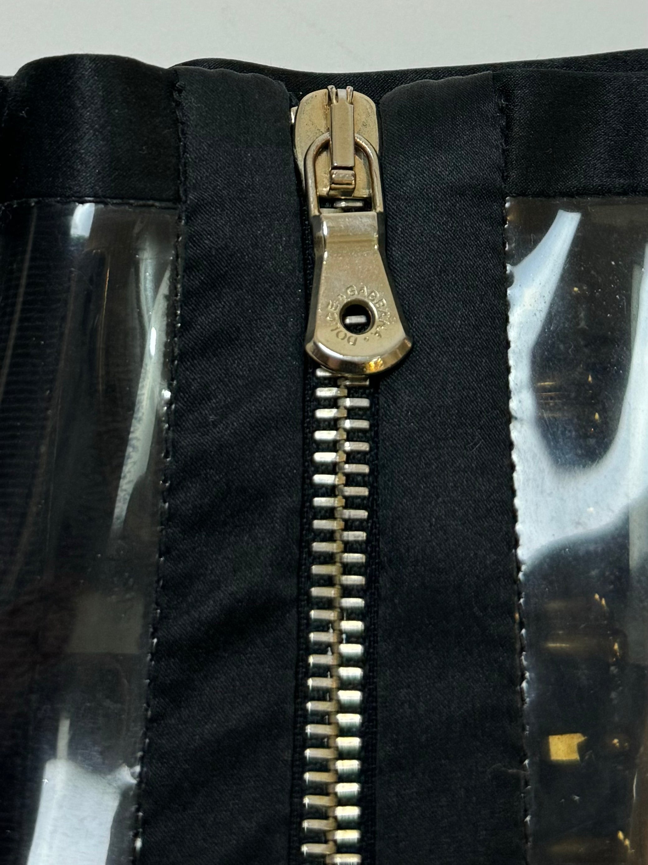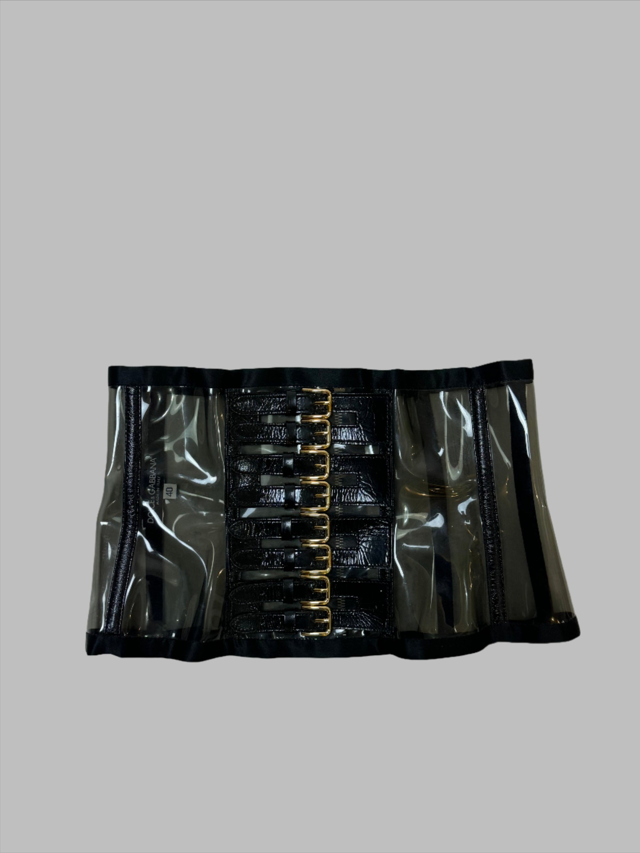 D&G SS 2007 runway piece, featuring 8 gold hardware buckle, PVC clear material and silk and leather details.