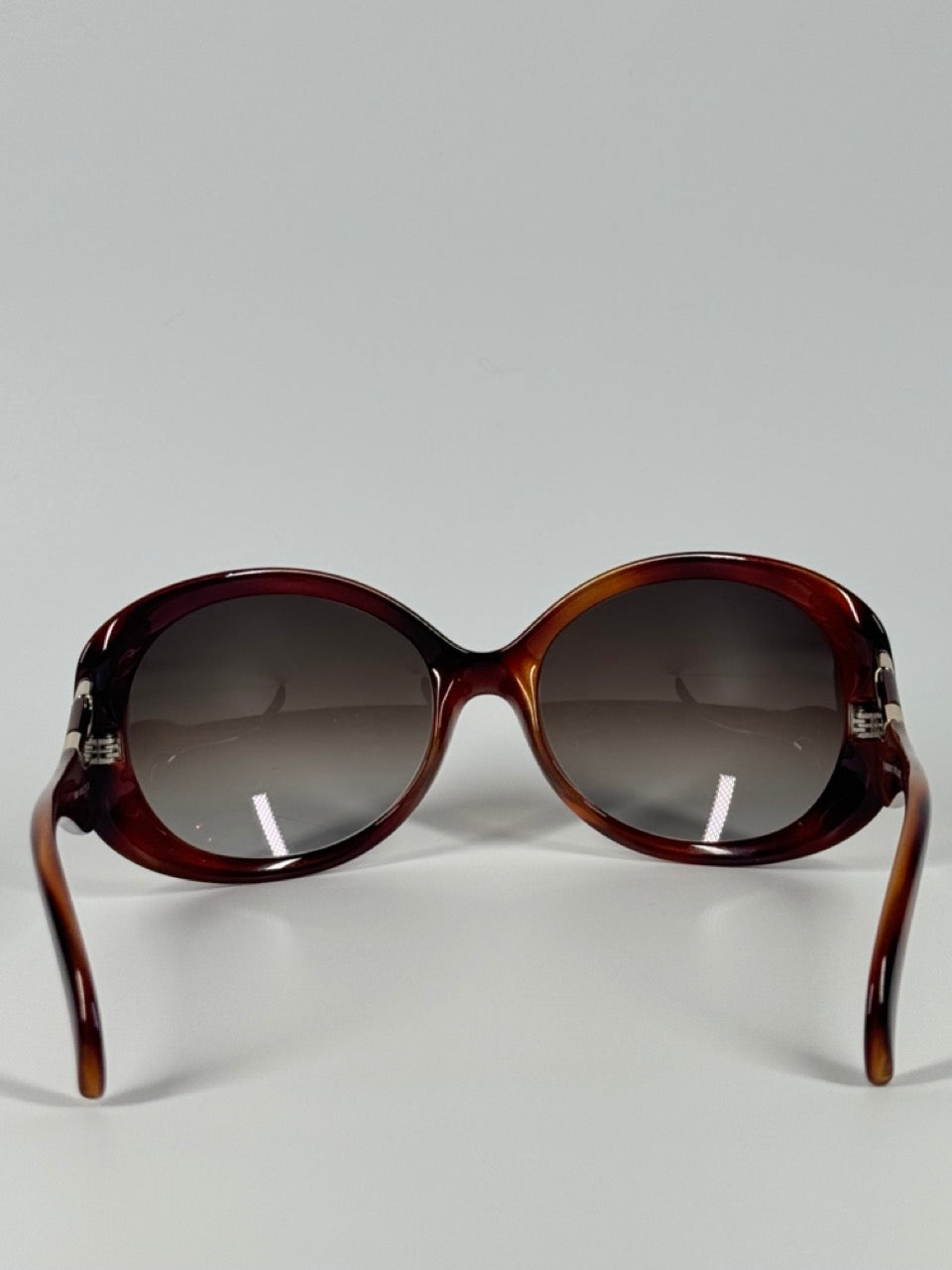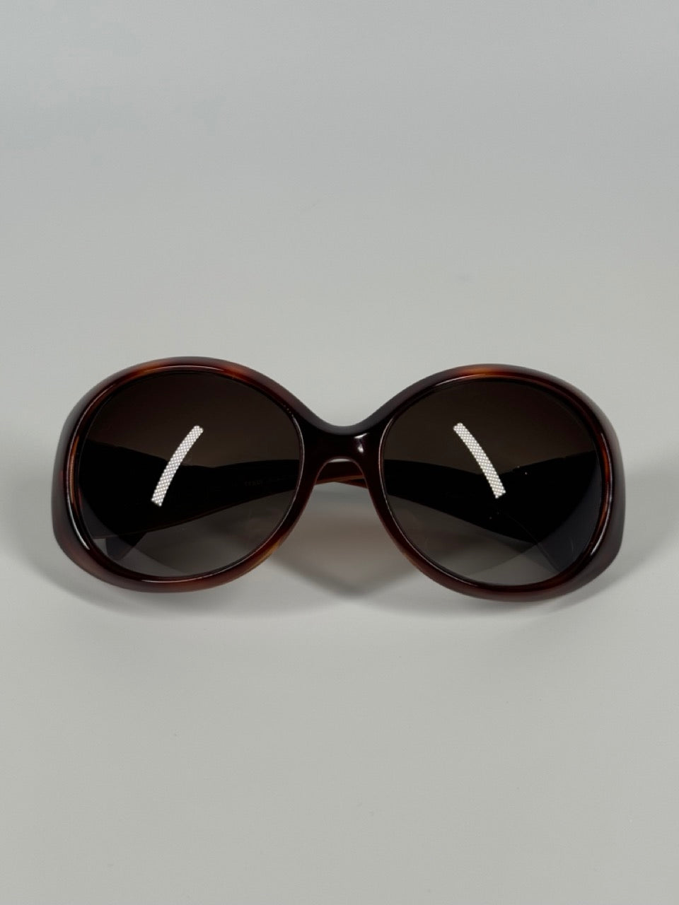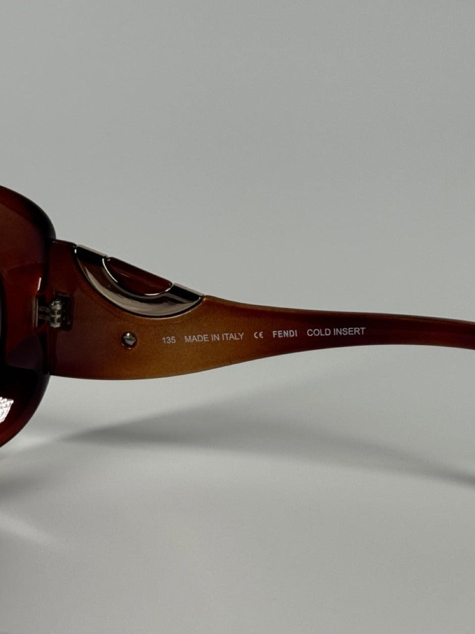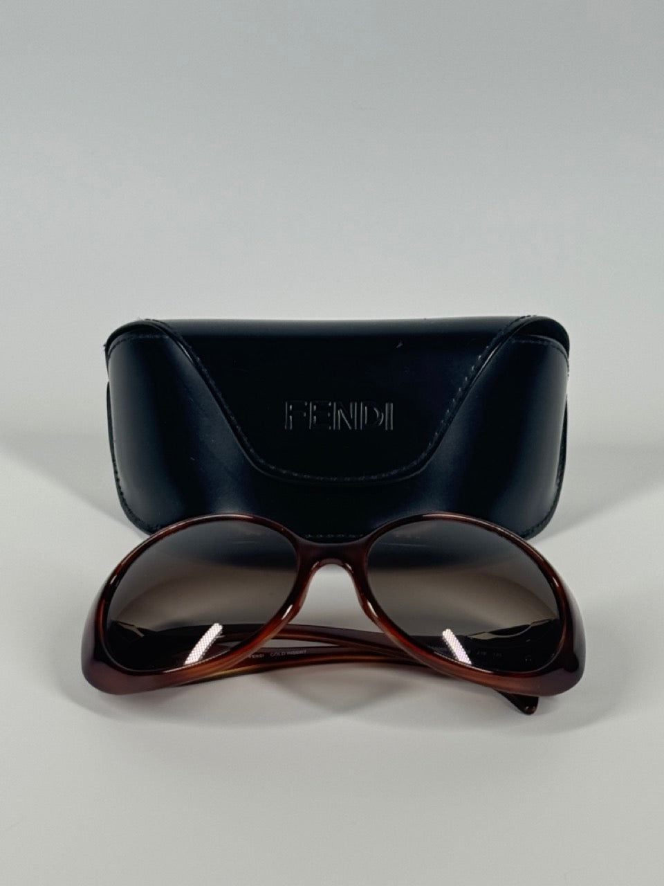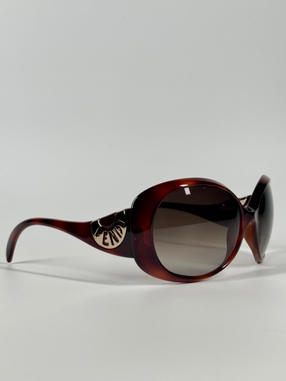 Tortoise shell oval frames with gradient brown lenses. Features Fendi logo hardware detailing on the temples. Come with original pochette.