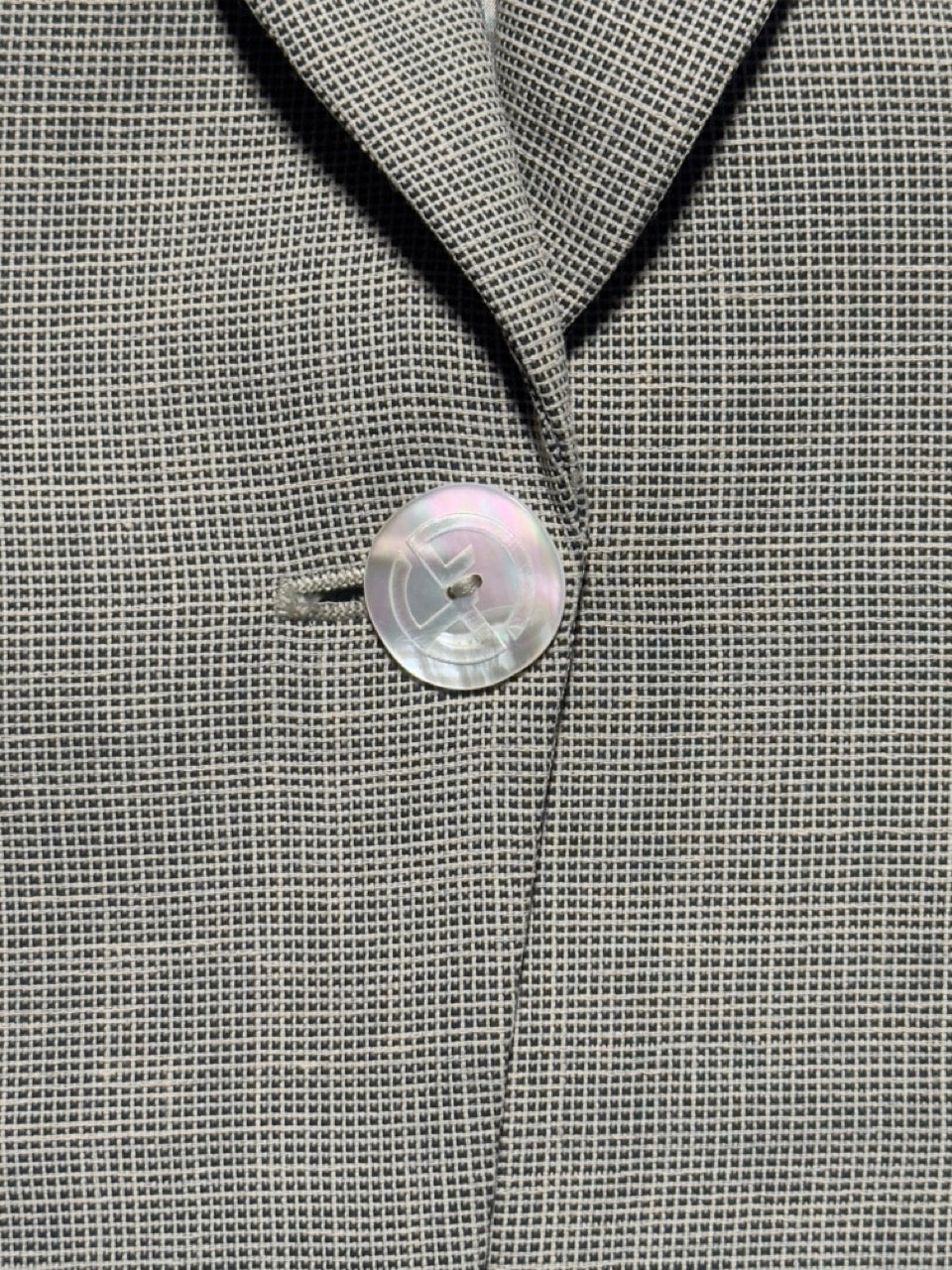 Mother-of-pearl single button closure with engraved Armani logo