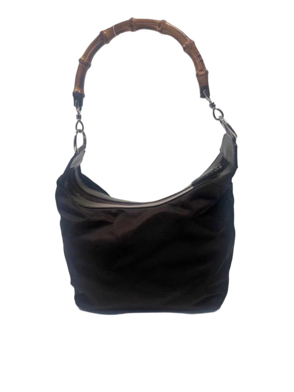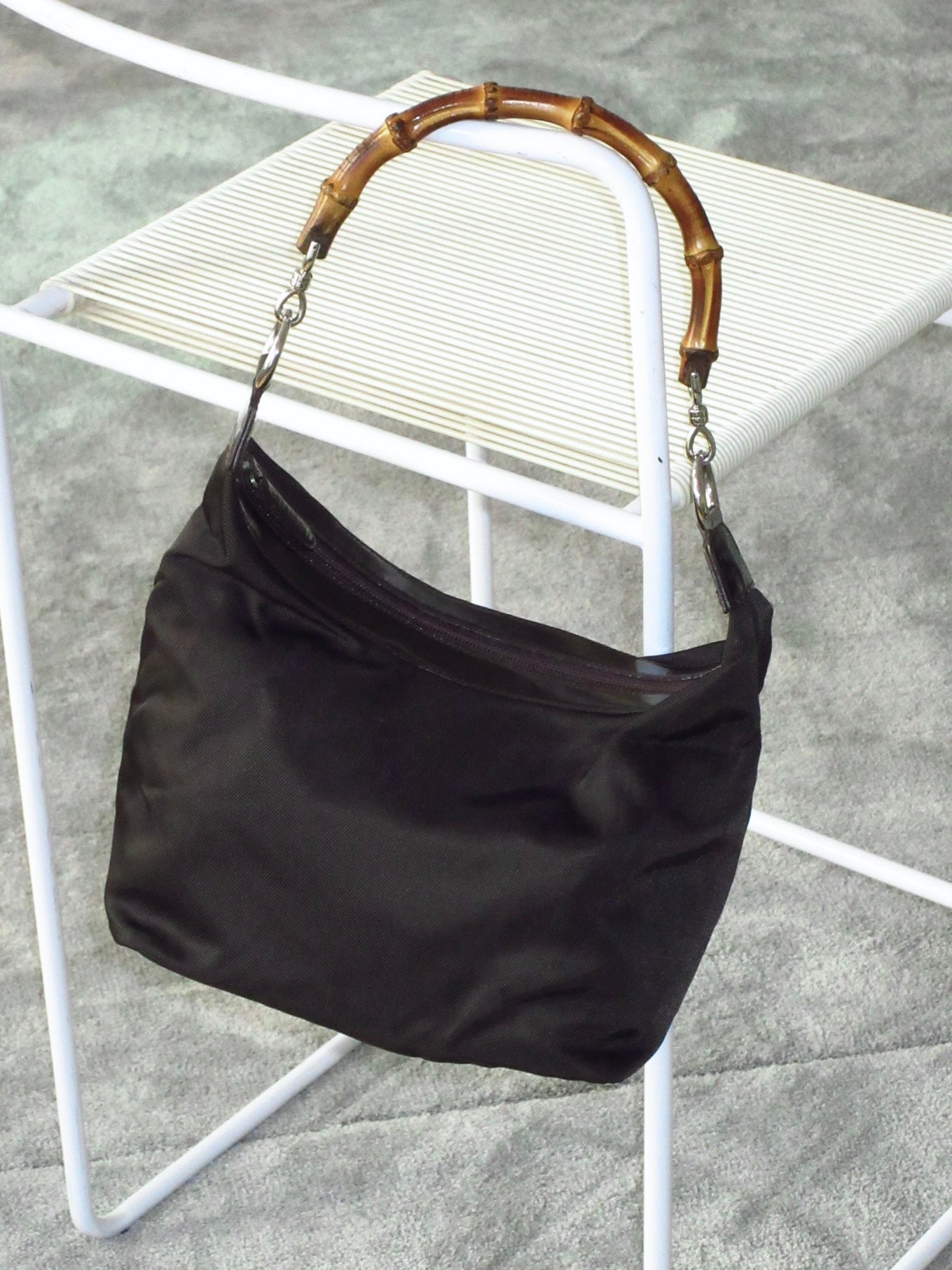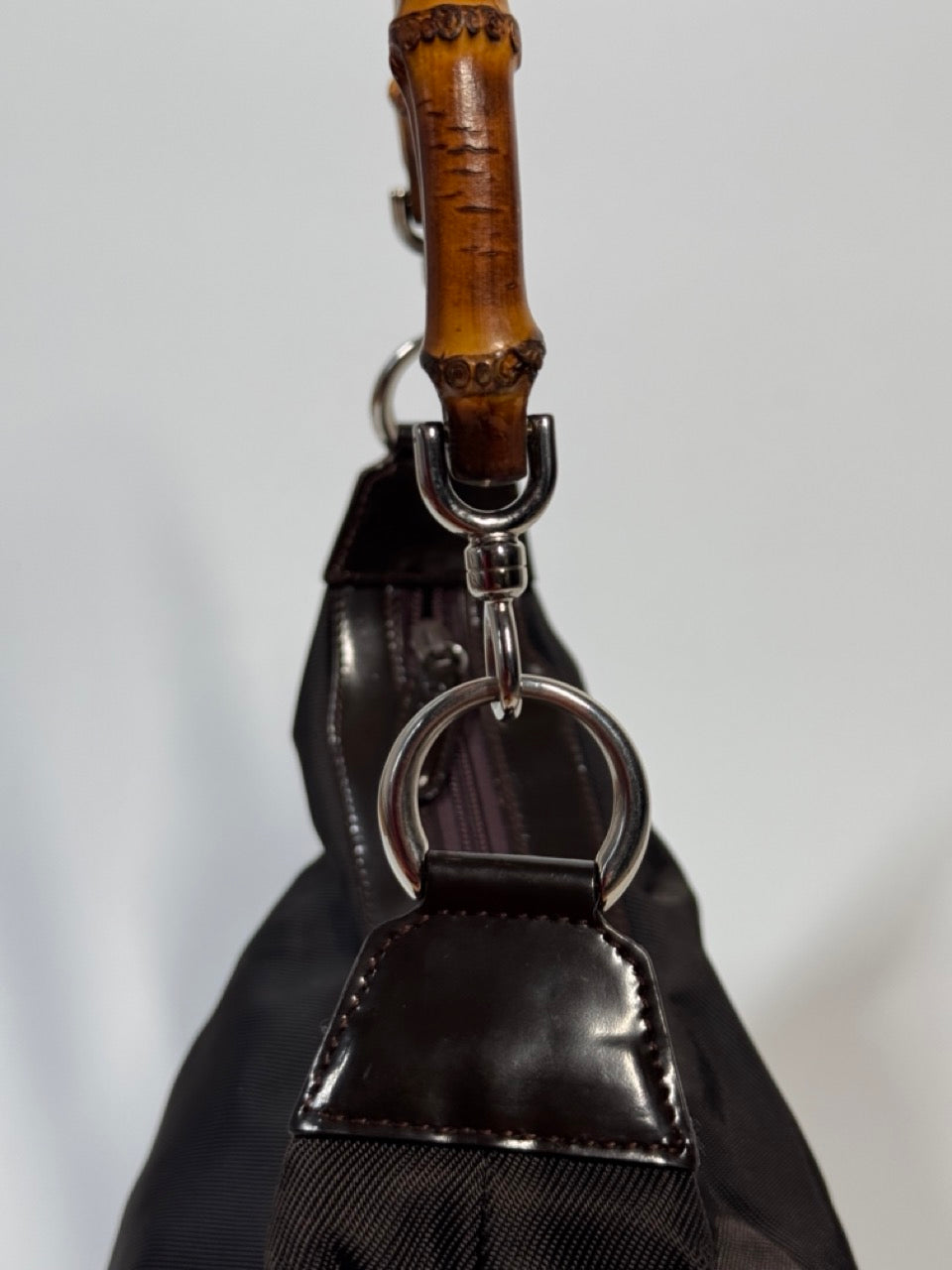Gucci Bamboo Handle Nylon Shoulder Bag