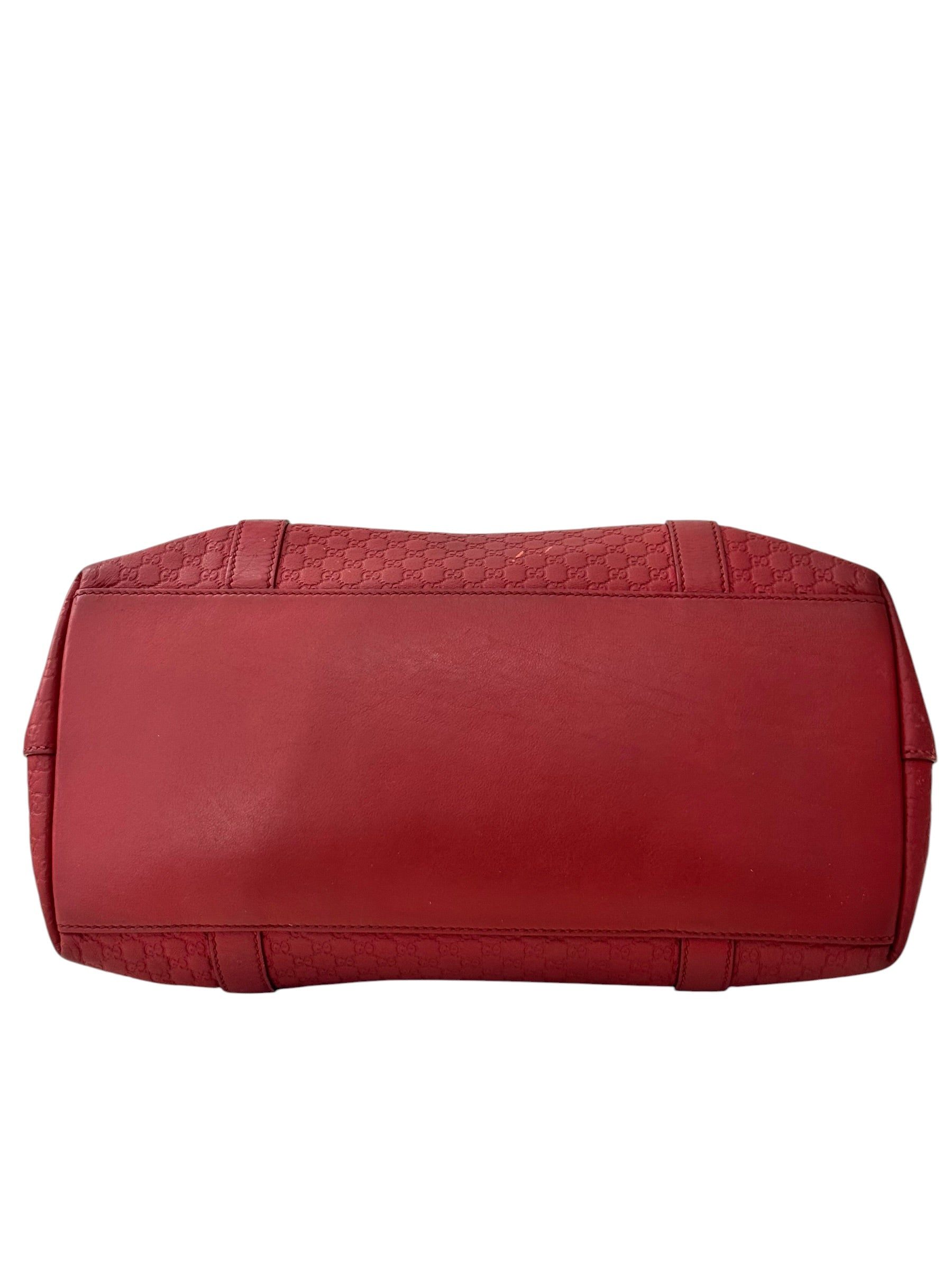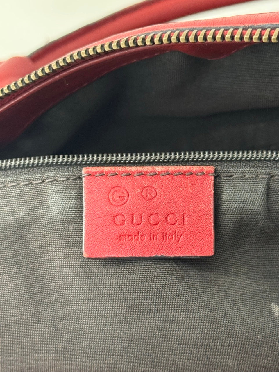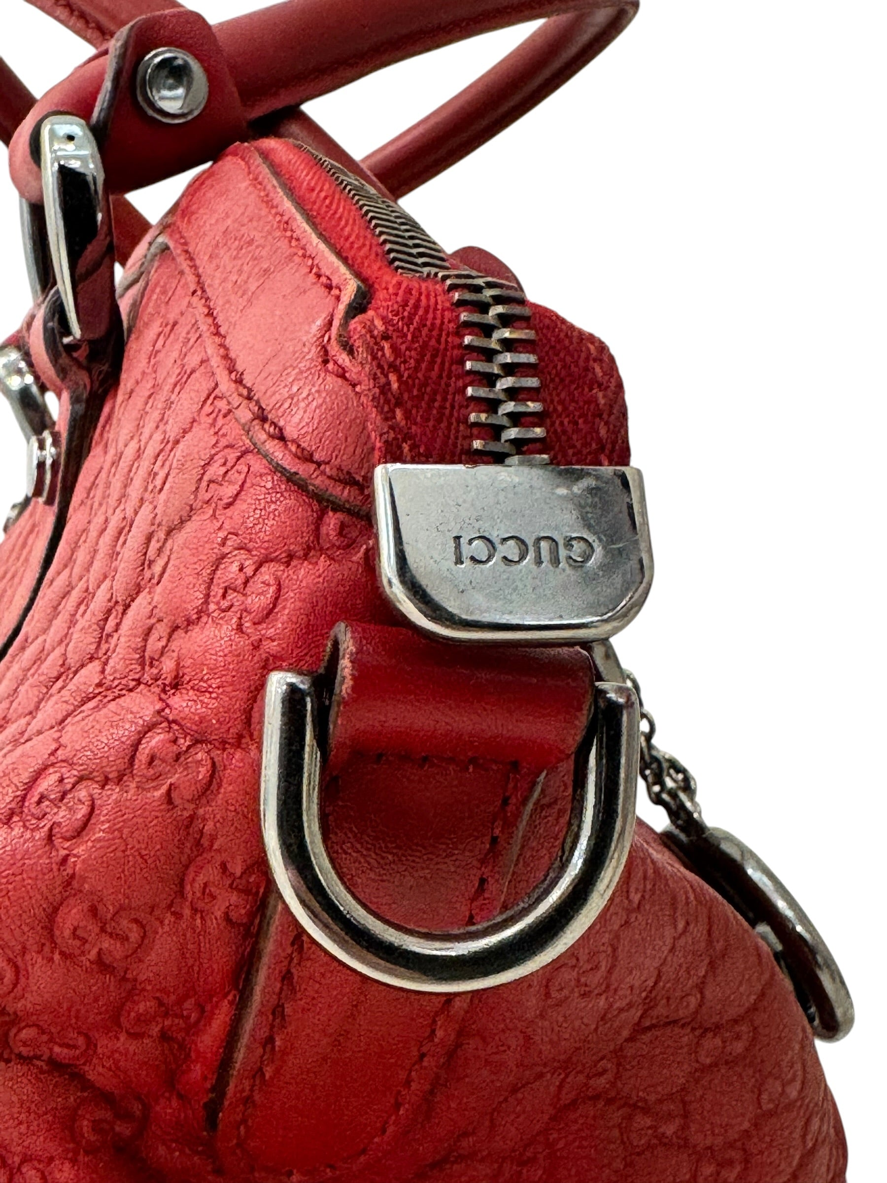 Soft-structured Boston bag in embossed Guccissima leather with dual handles and signature GG charm hardware.
