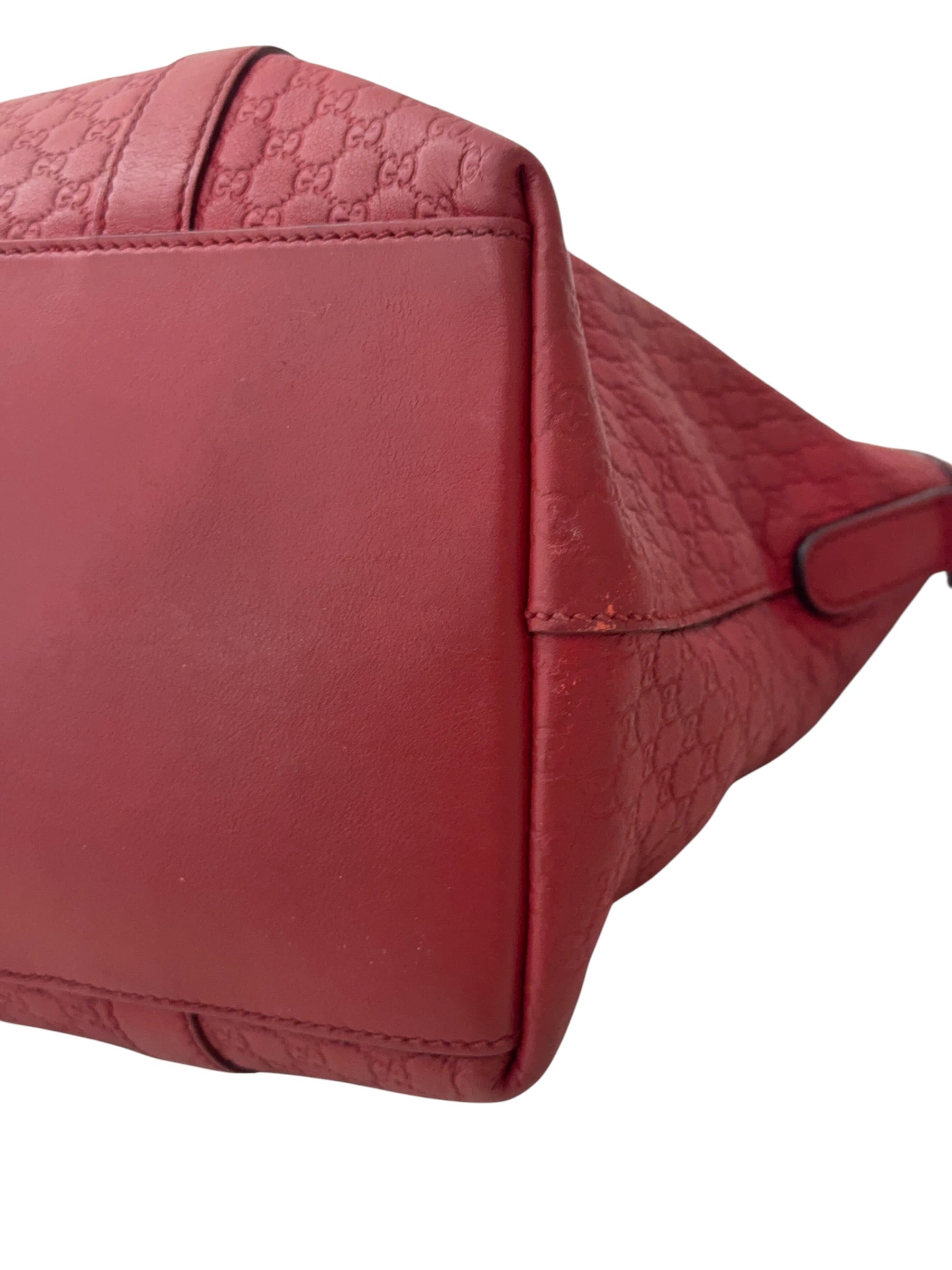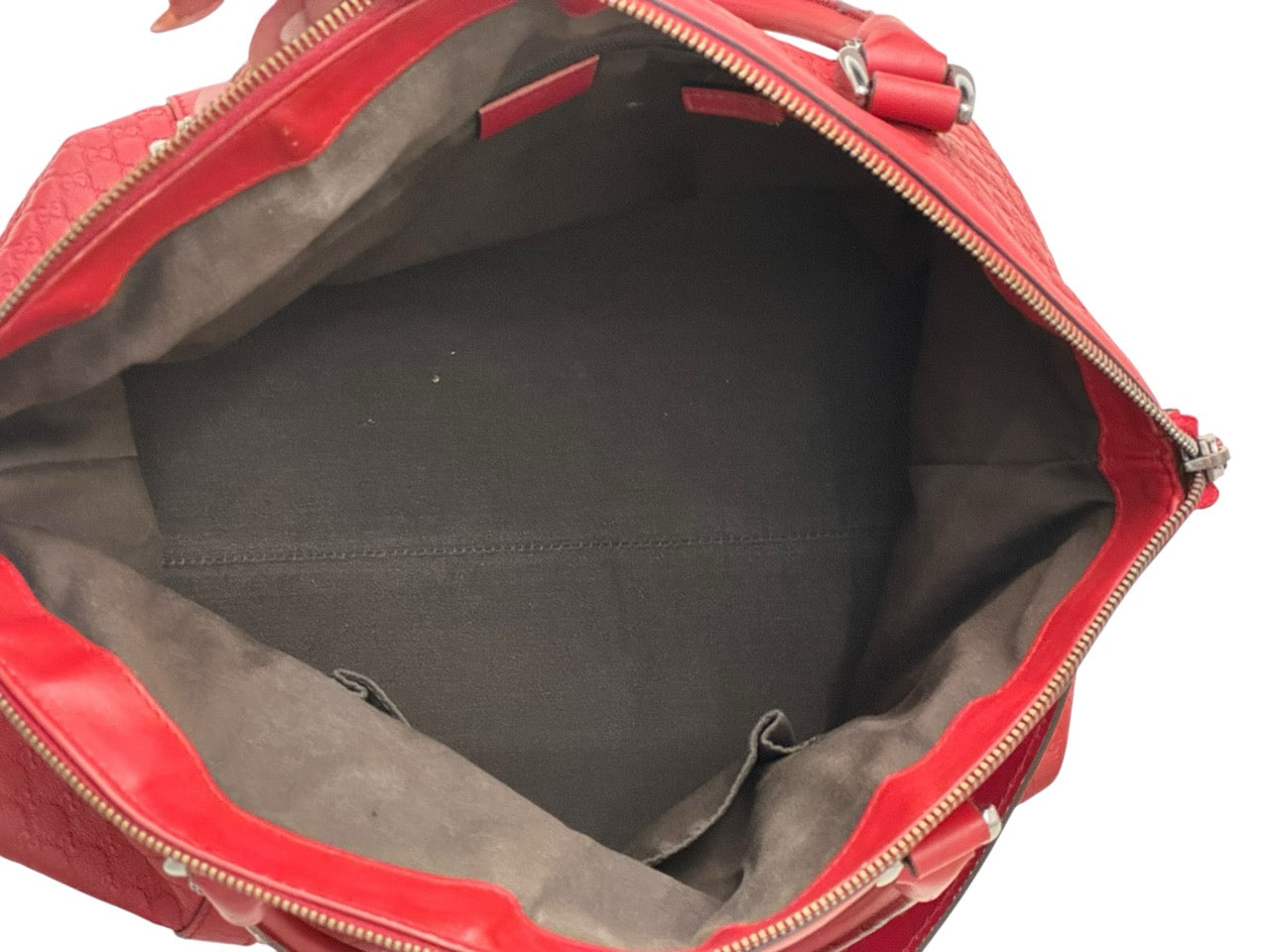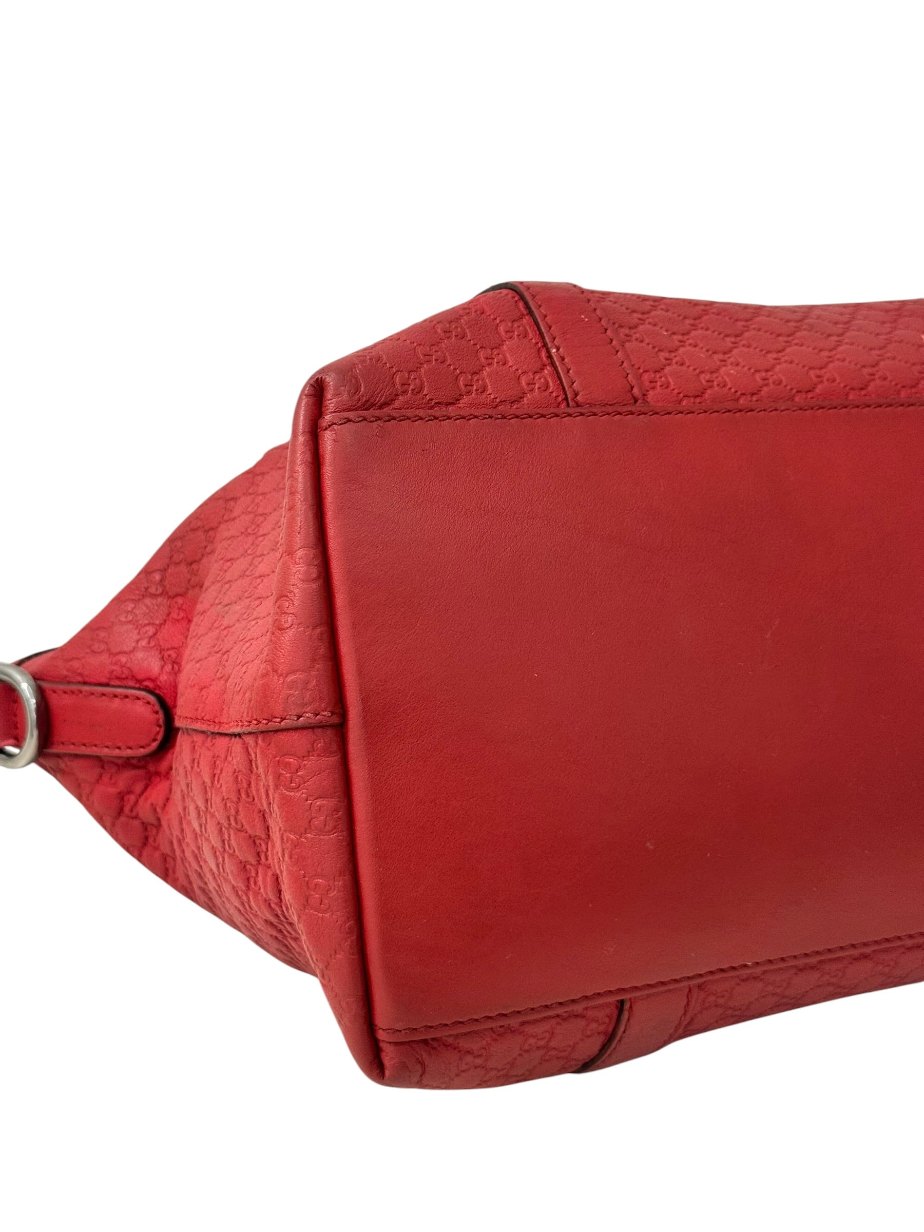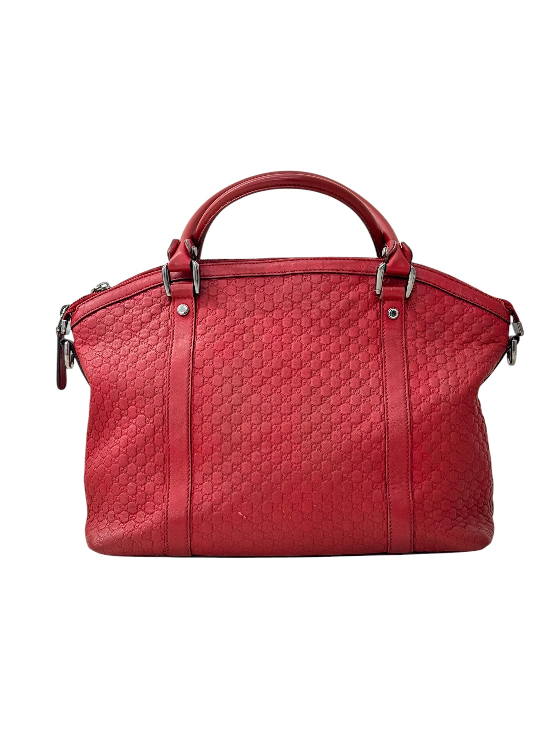 Soft-structured Boston bag in embossed Guccissima leather with dual handles and signature GG charm hardware.