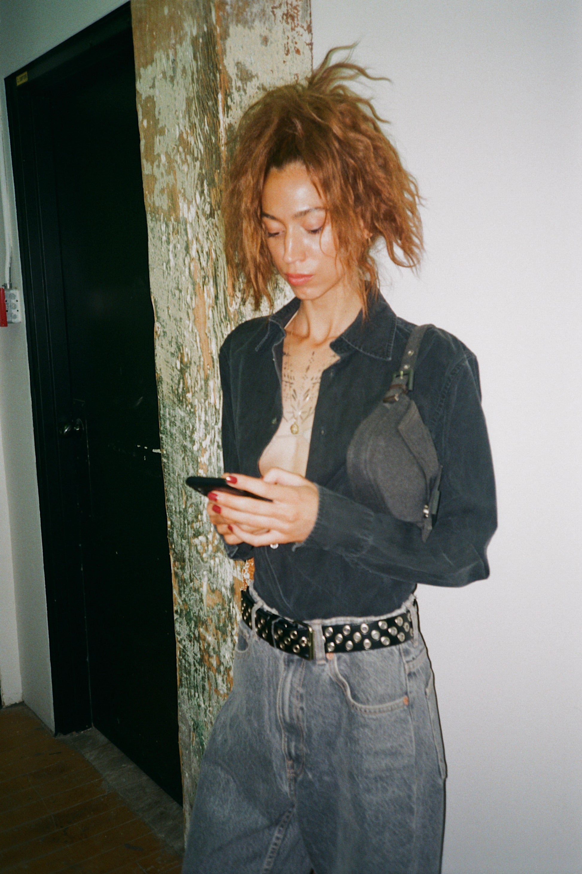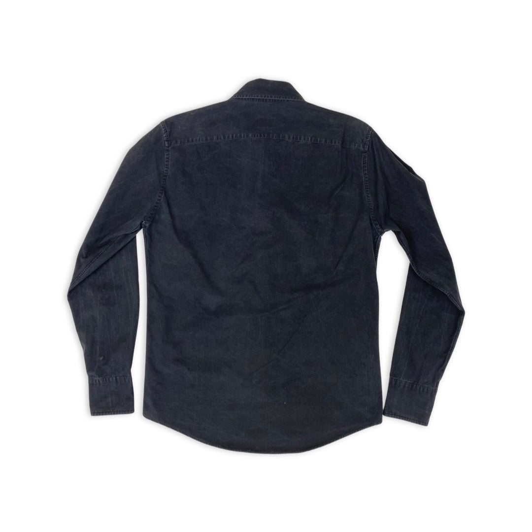 + Cotton long sleeve shirt, fitted silhouette in acid wash black.