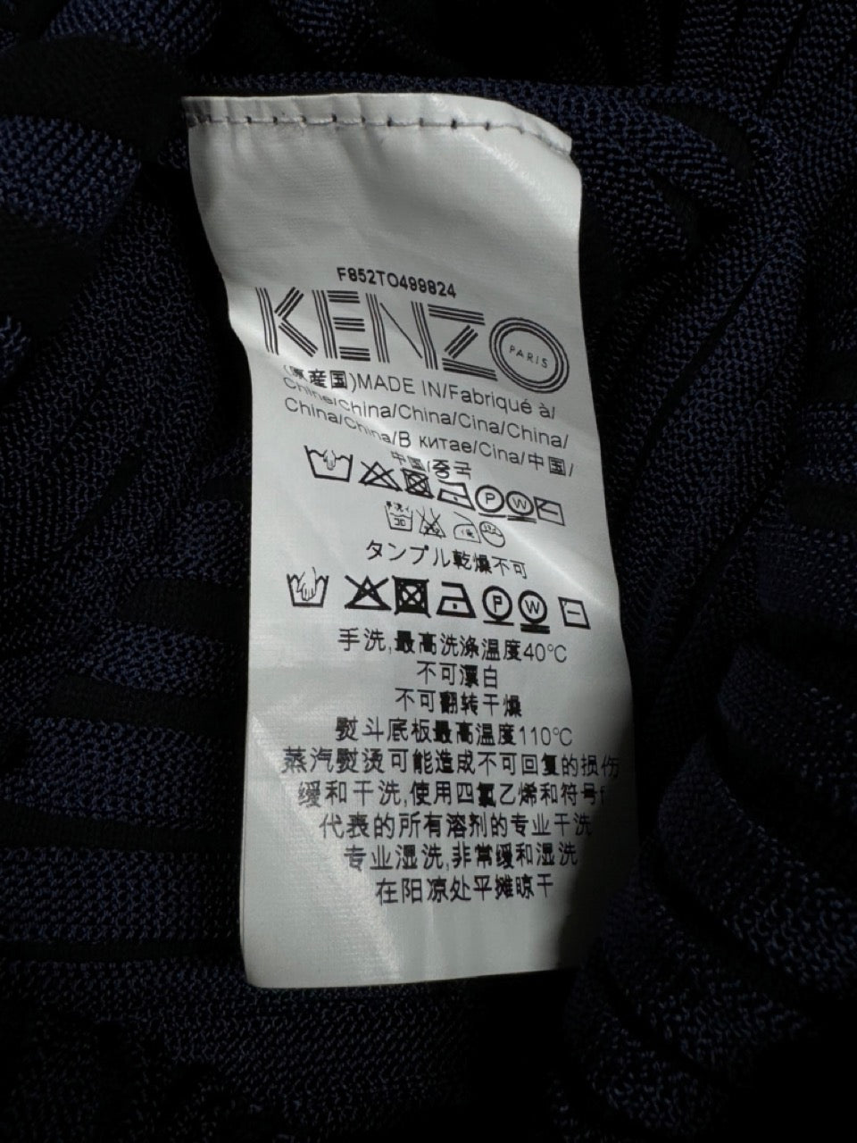Two-tone navy and black Kenzo Paris sweater features bell sleeves and a V-cut neckline, made from a blend of viscose and cotton.