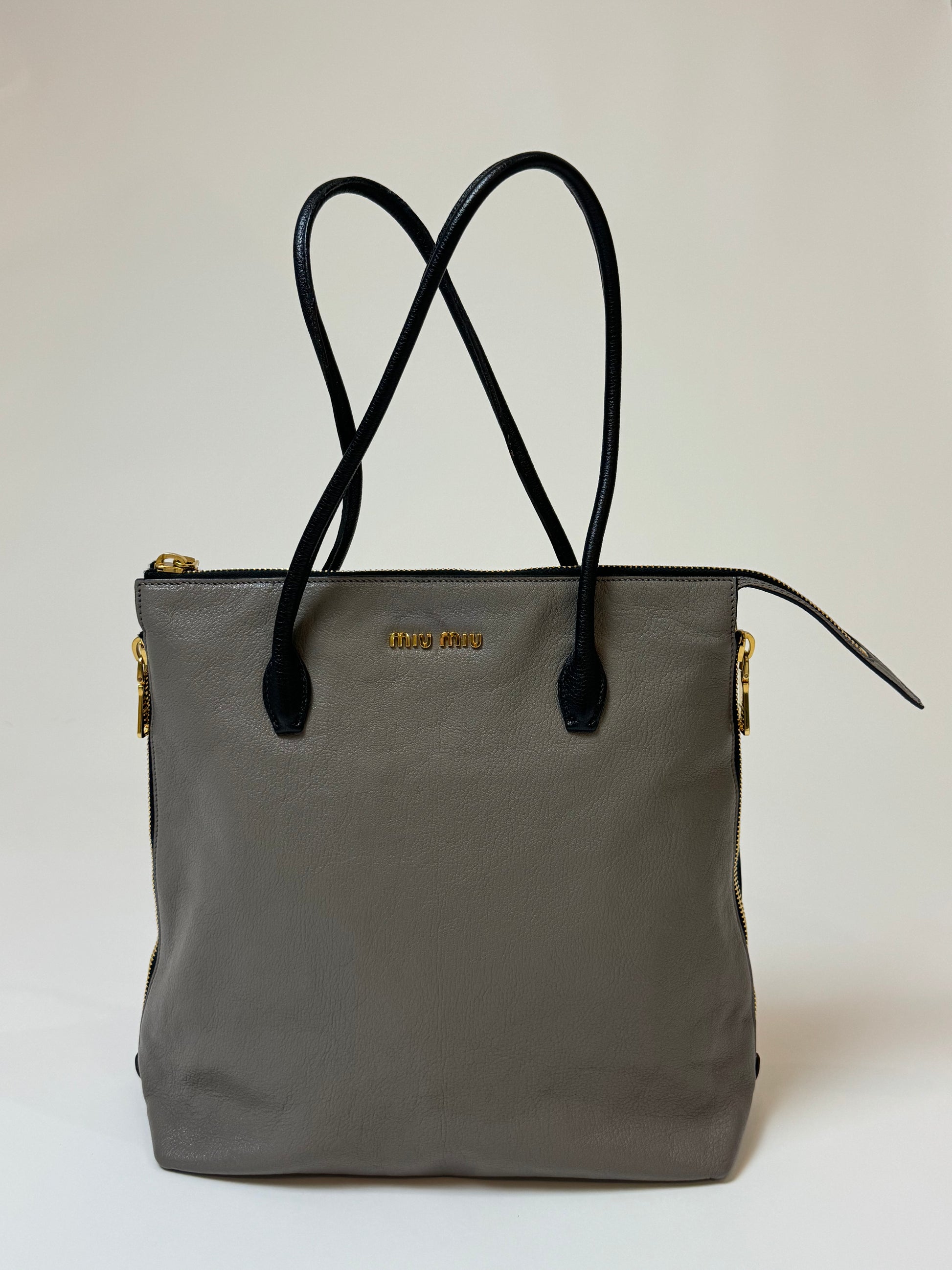 Miu Miu Vitello Leather Zipper Tote
