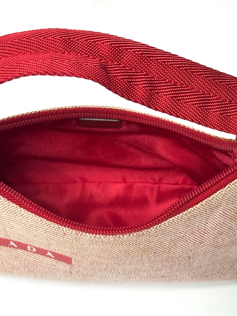 • Light red canvas exterior with subtle red micro-weave texture