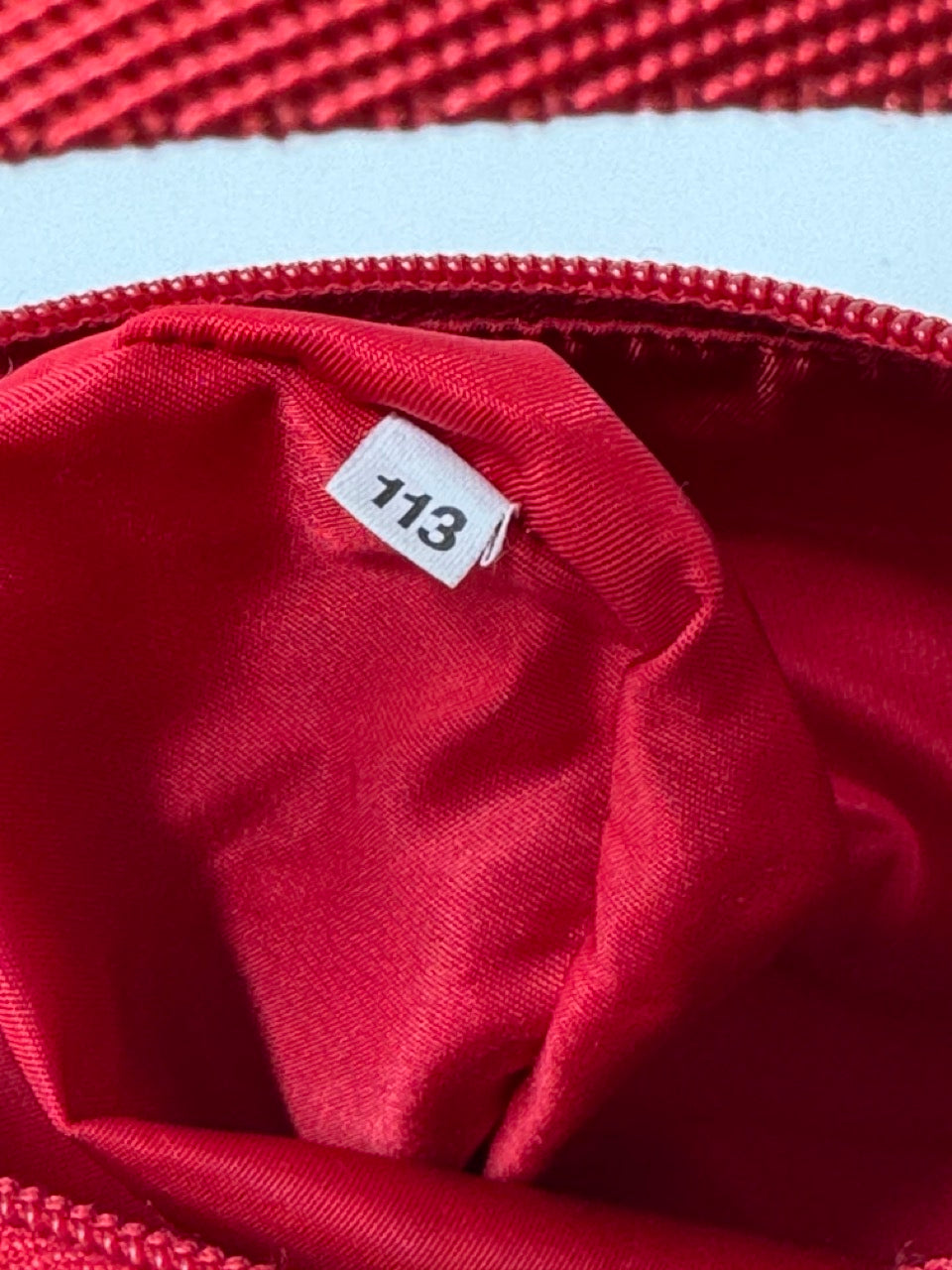 • Code tag marked “113” inside inner seam