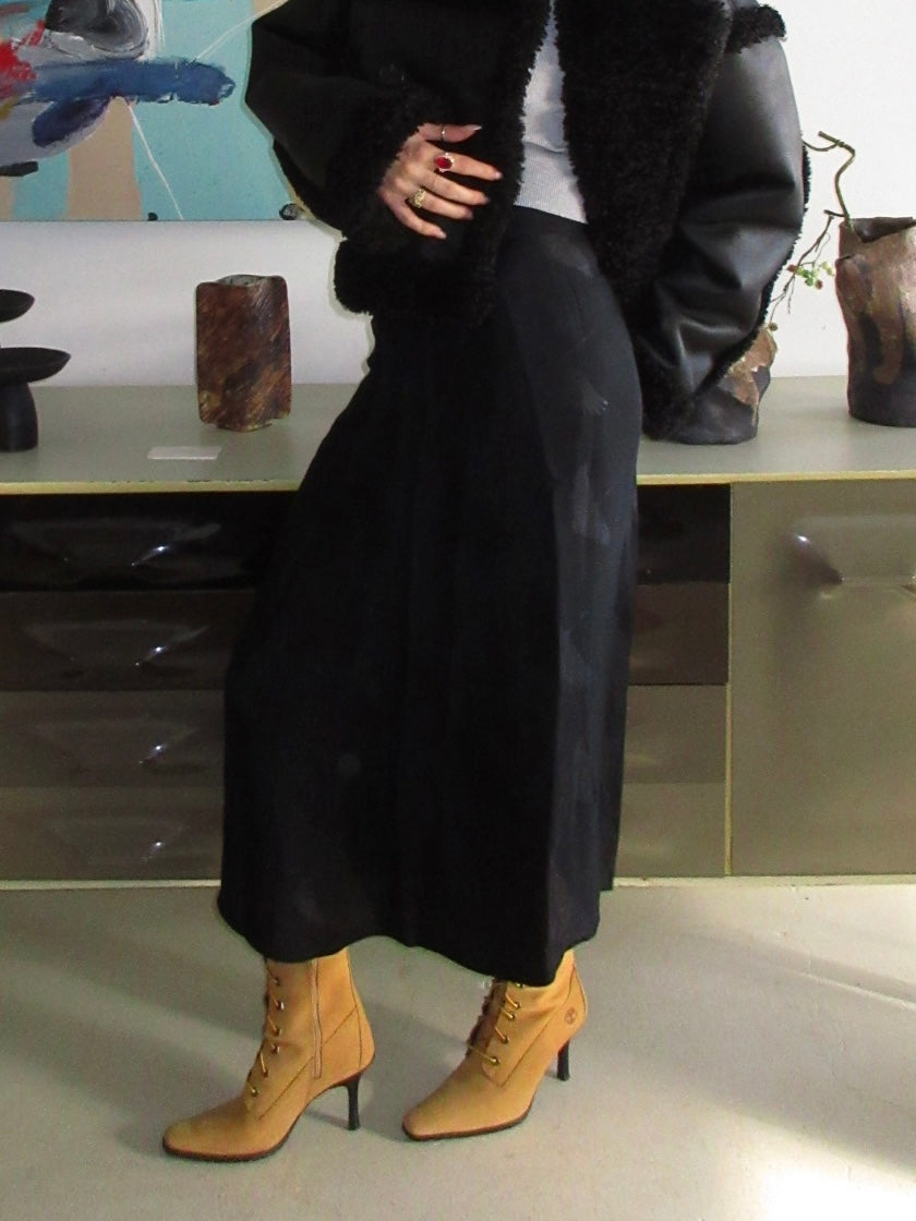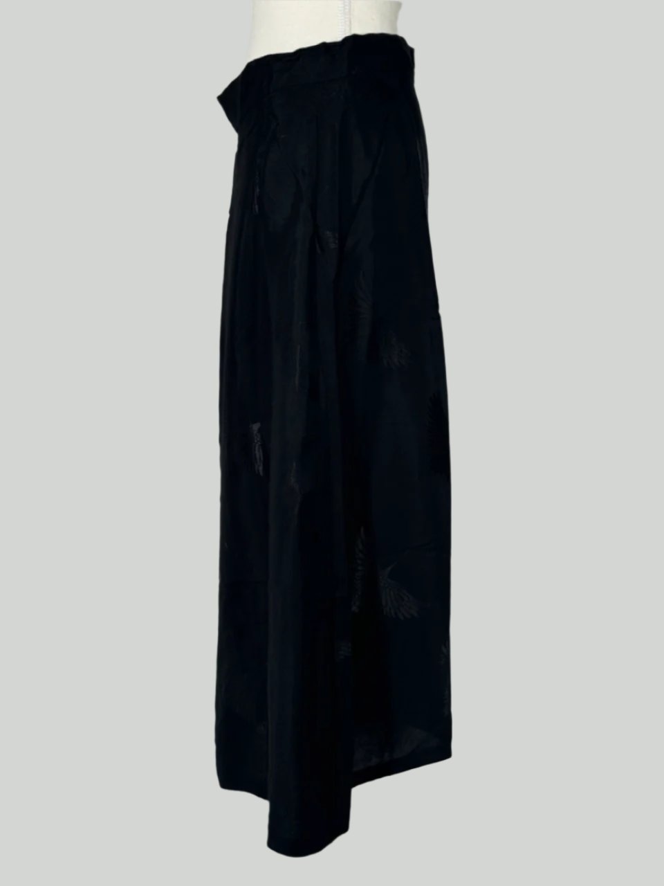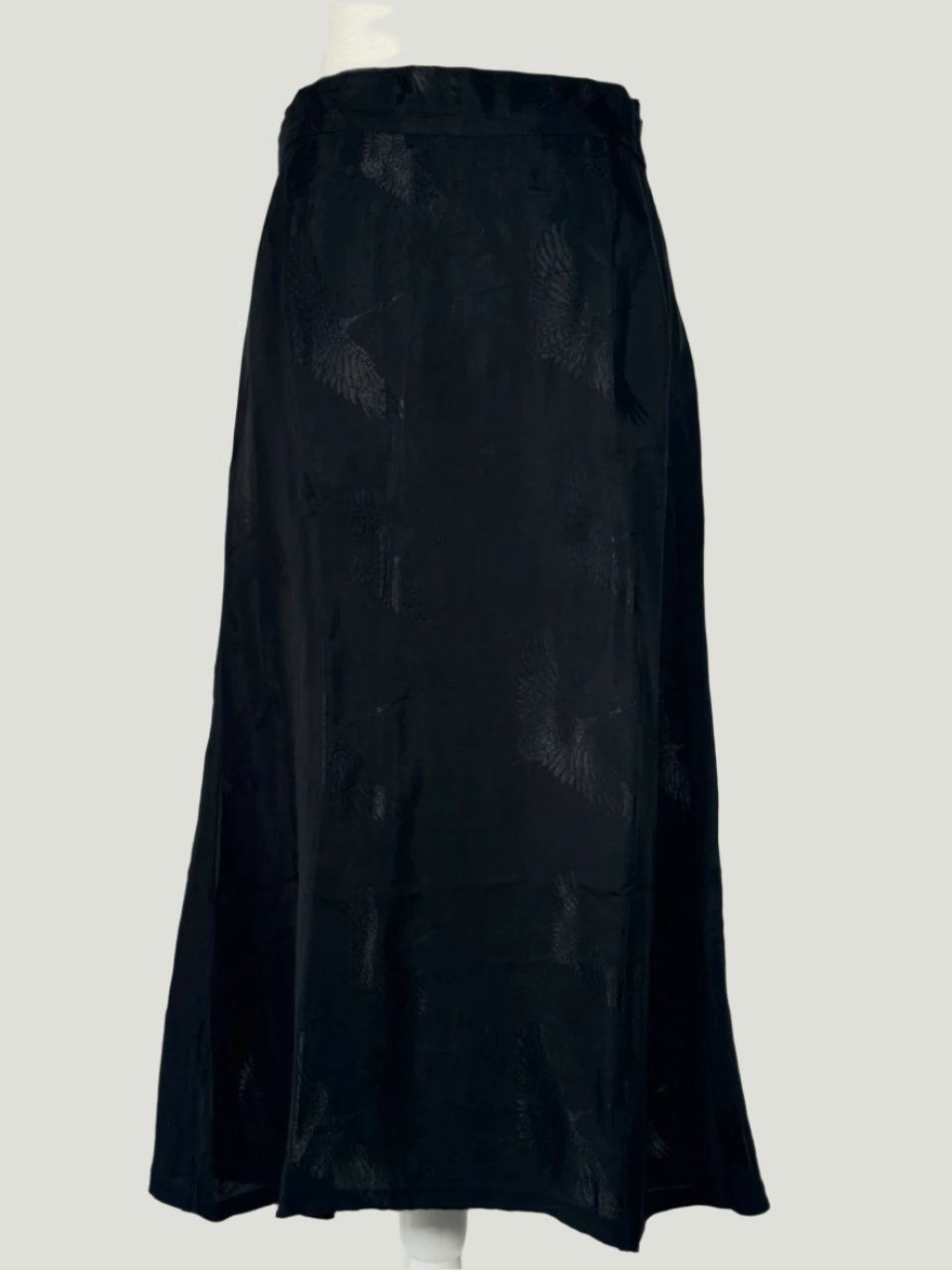 + Maxit skirt with side zipper closure, made from silk blend material, featuring jacquard bird pattern print.