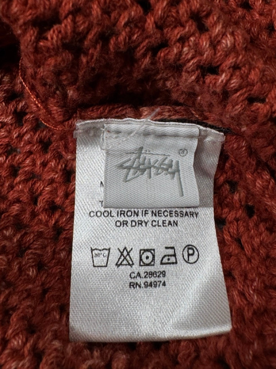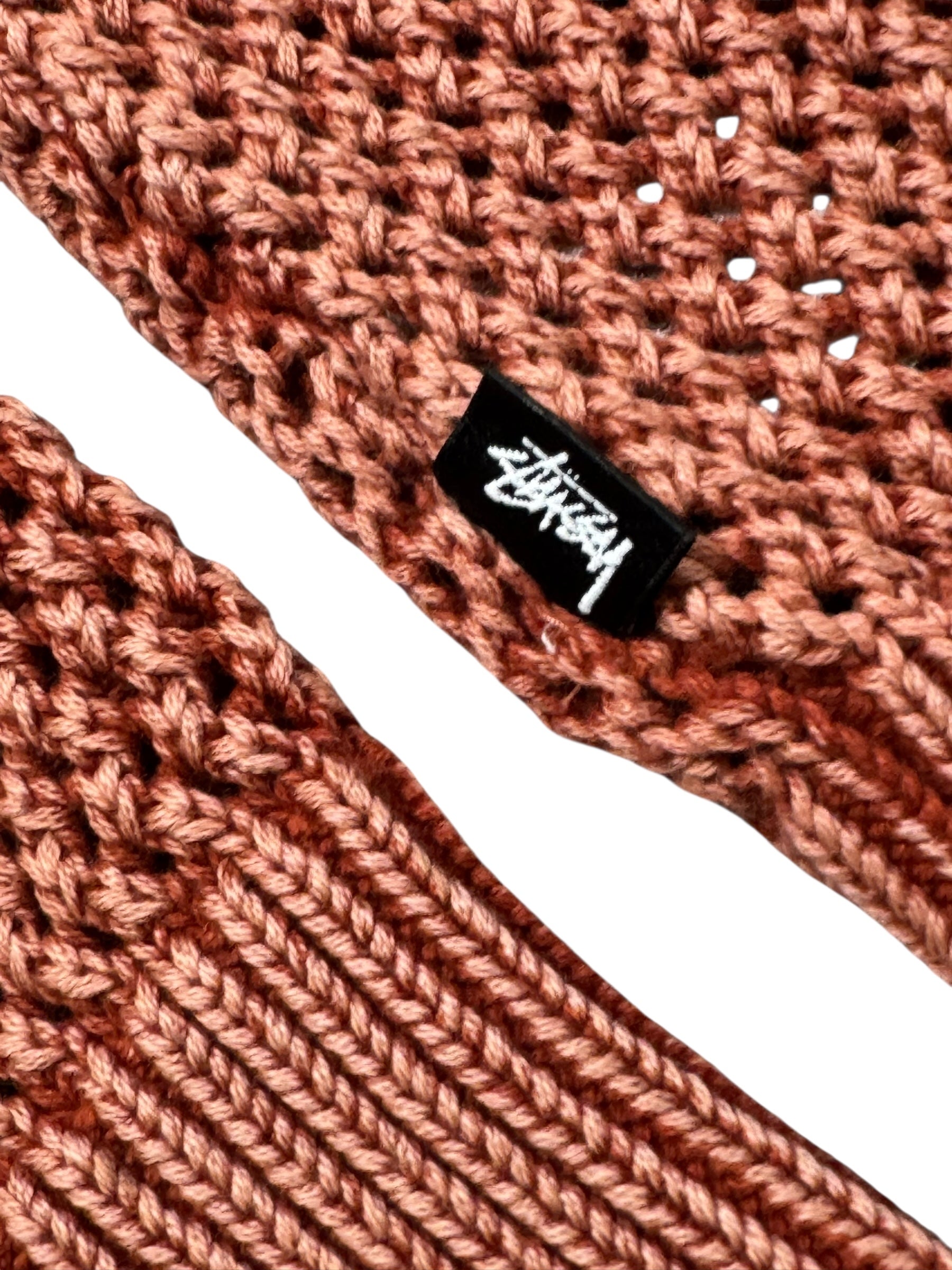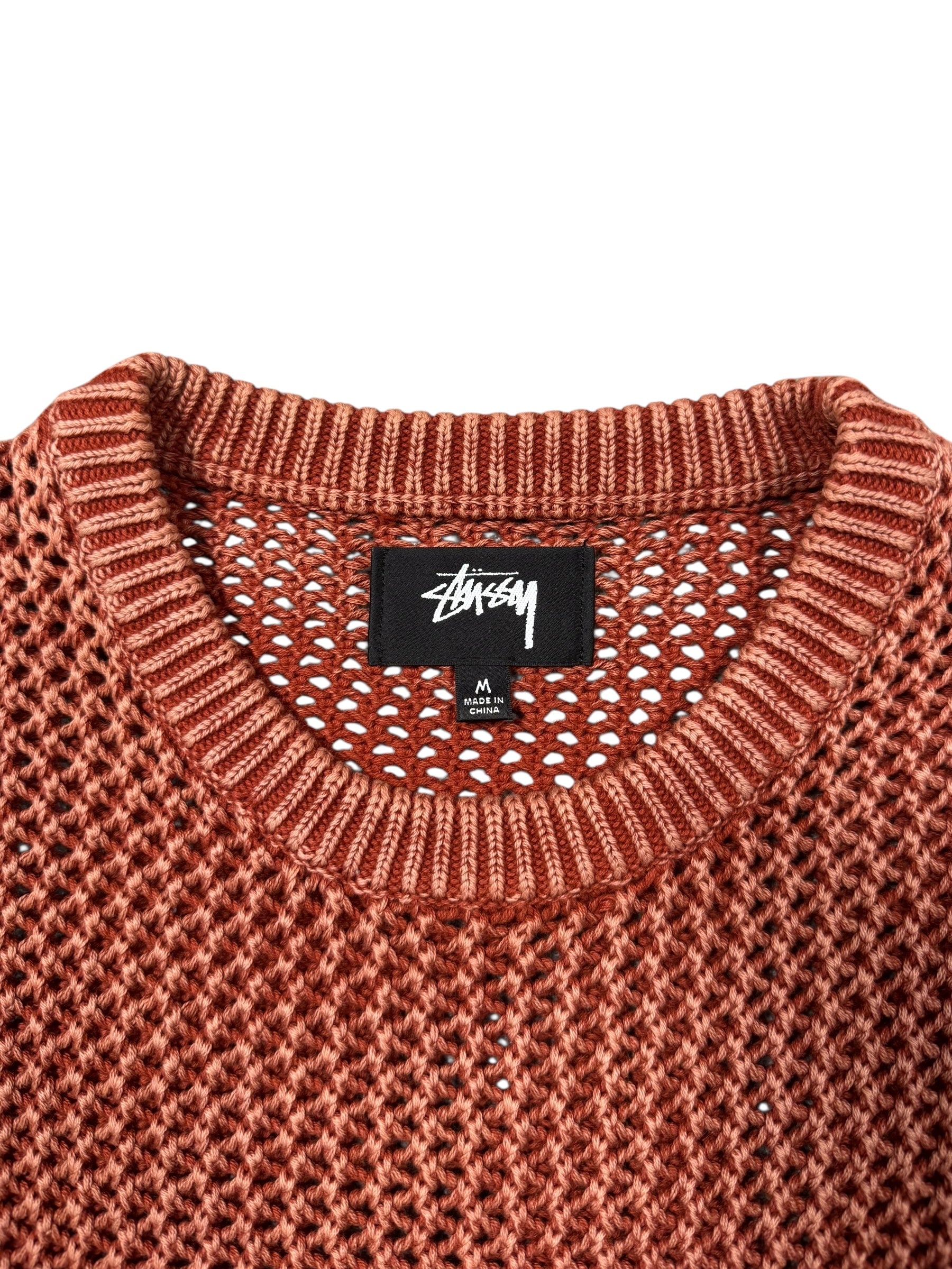 A textured open-knit sweater from Stüssy in a warm rust tone, featuring the brand’s signature laid-back construction and relaxed silhouette. Designed with a loosely woven knit that adds breathability and structure, this piece blends skate and surf roots with elevated streetwear craftsmanship.