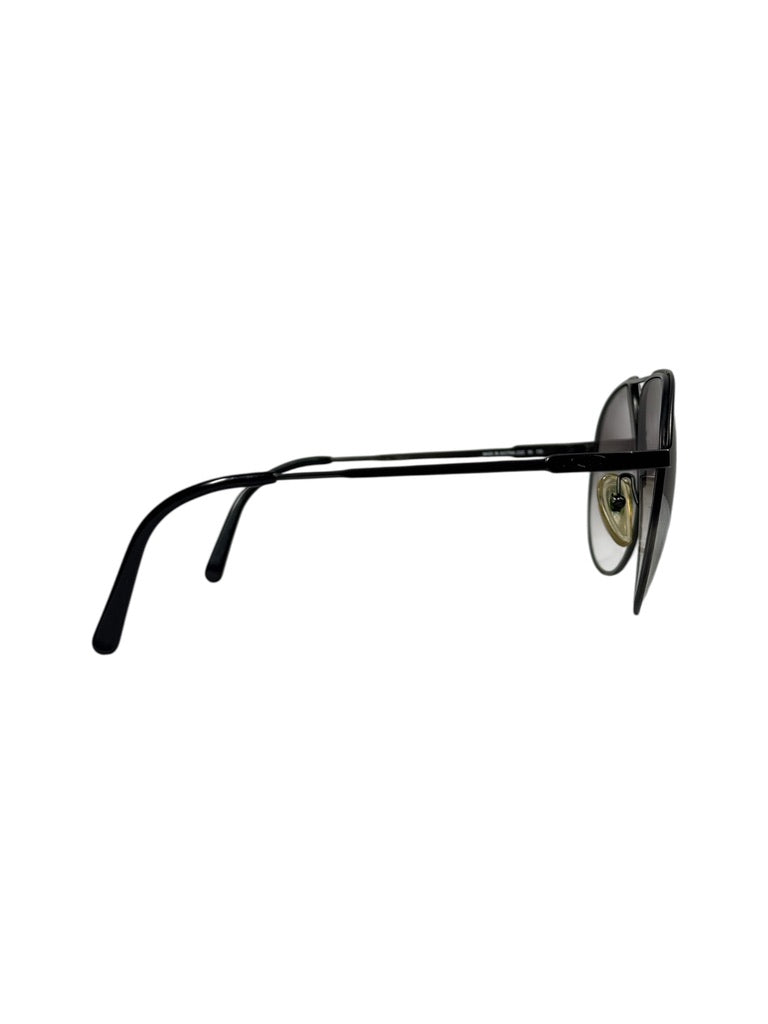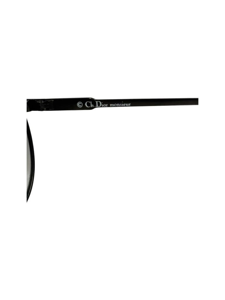 Produced under the Dior Monsieur eyewear line, this aviator frame reflects Dior’s late-1970s to early-1980s approach to men’s accessories: precise, architectural, and quietly technical. Made in Austria, it’s built in lightweight black metal with a double bridge and slim linear temples, finished with grey gradient lenses and discreet “Ch. Dior monsieur” temple stamping.